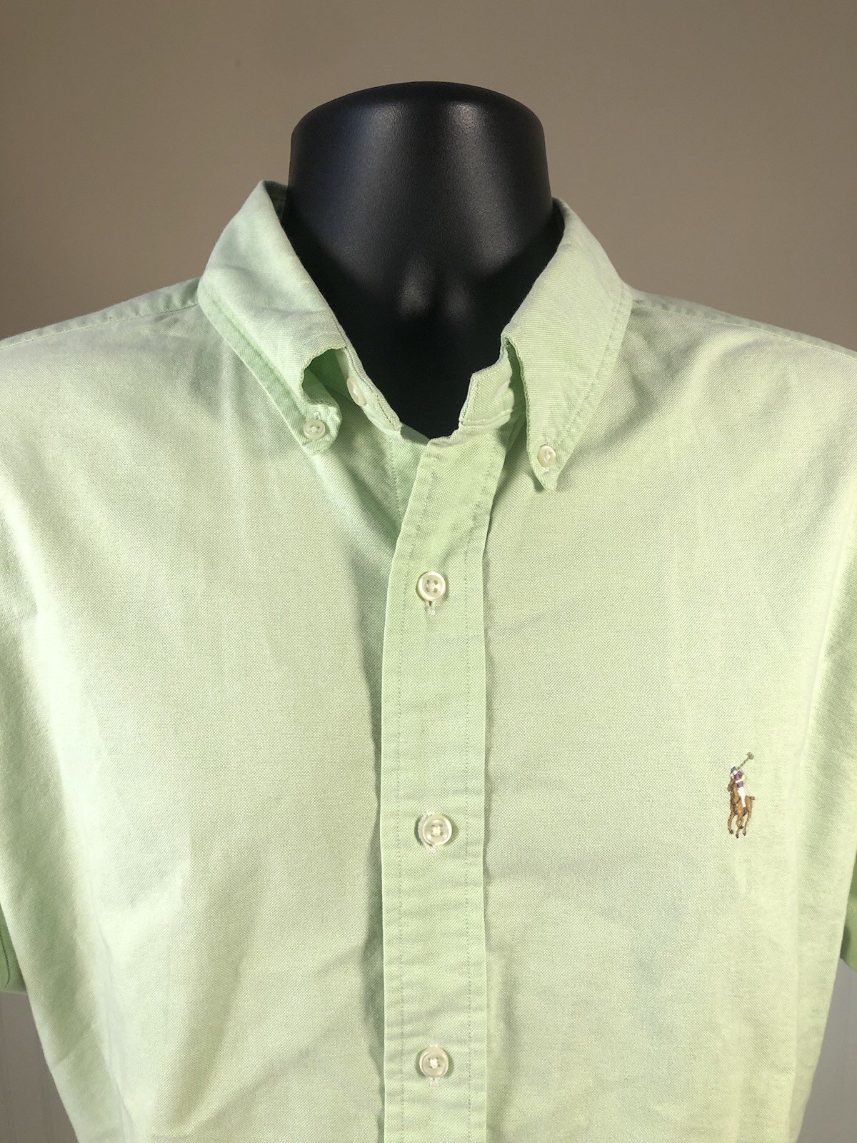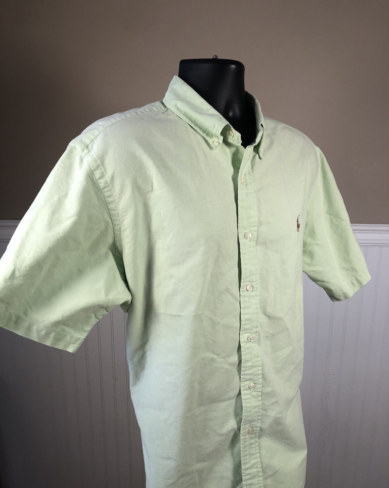 как выглядит Polo Ralph Lauren Mens XL Green Short Sleeve Button Down Shirt Cotton фото