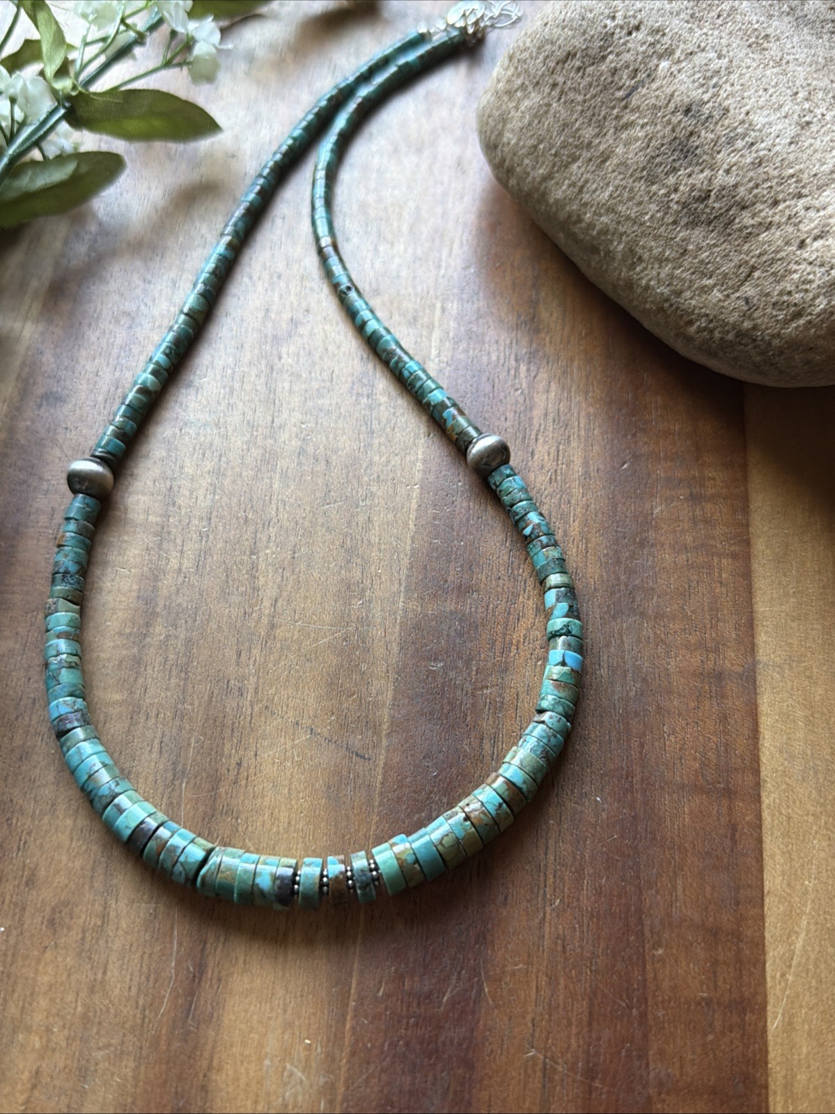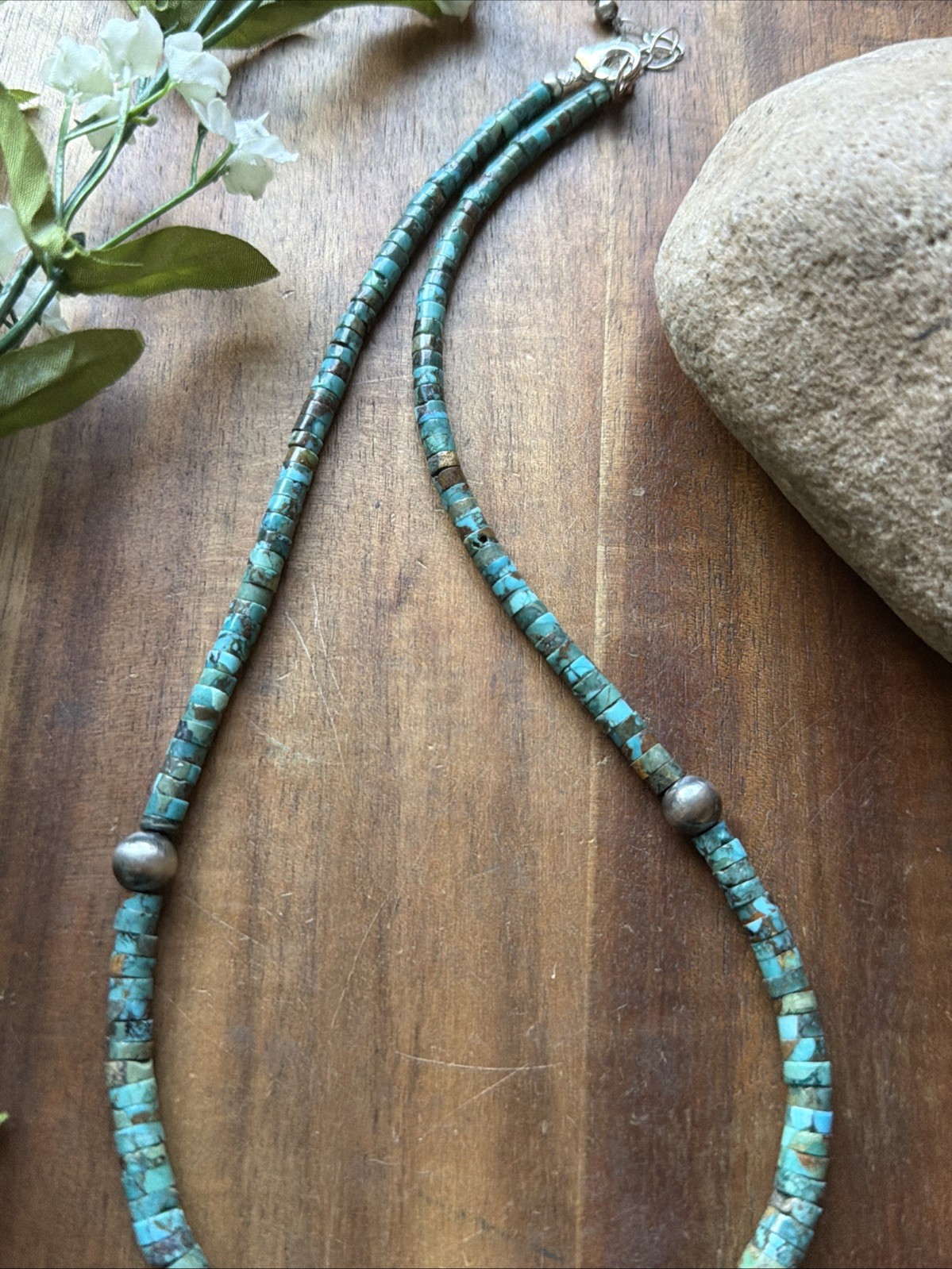 Sterling Silver Graduated Heishi Turquoise Bead Necklace. 19 inch