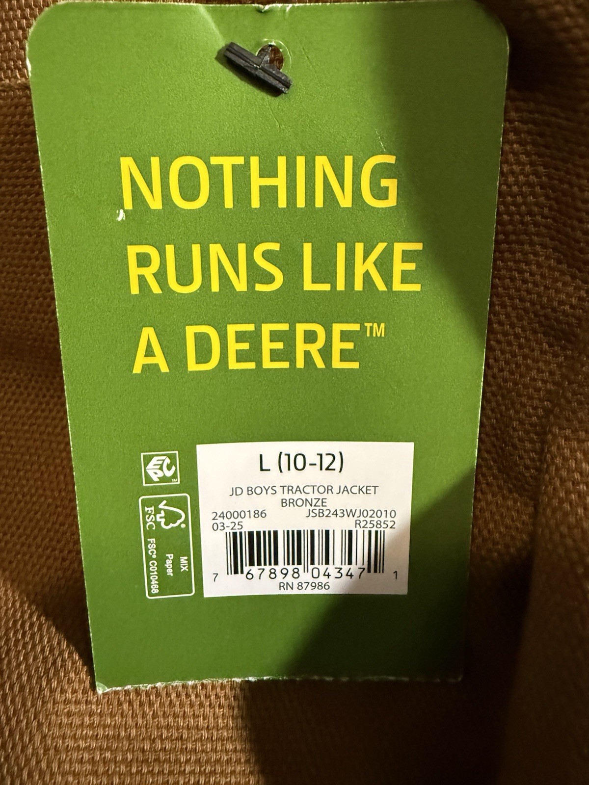 как выглядит John Deere JD Boys Bronze Canvas Full Zip Lined Tractor Jacket L 10-12 фото