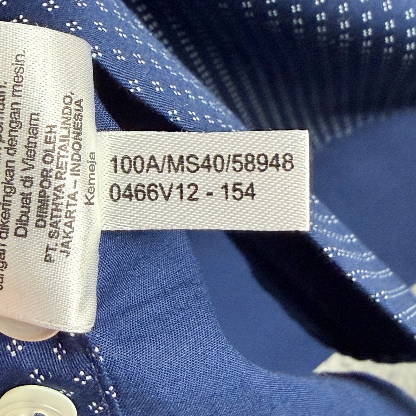 TM Lewin Men's 17 43cm 36 97cm Fitted Dress Shirt Navy Blue Geometric Dot Cotton