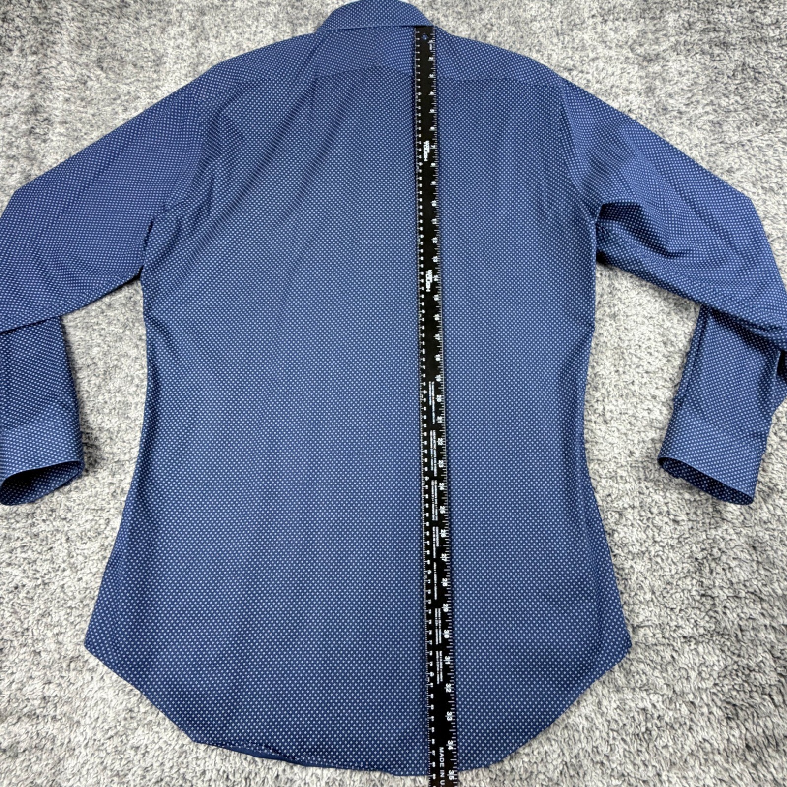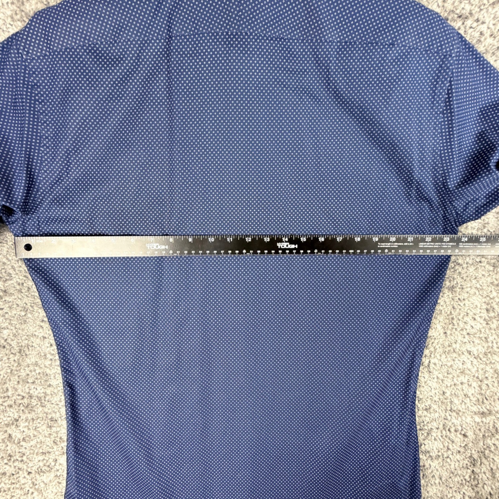 как выглядит TM Lewin Mens 17 43cm 36 97cm Fitted Dress Shirt Navy Blue Geometric Dot Cotton фото