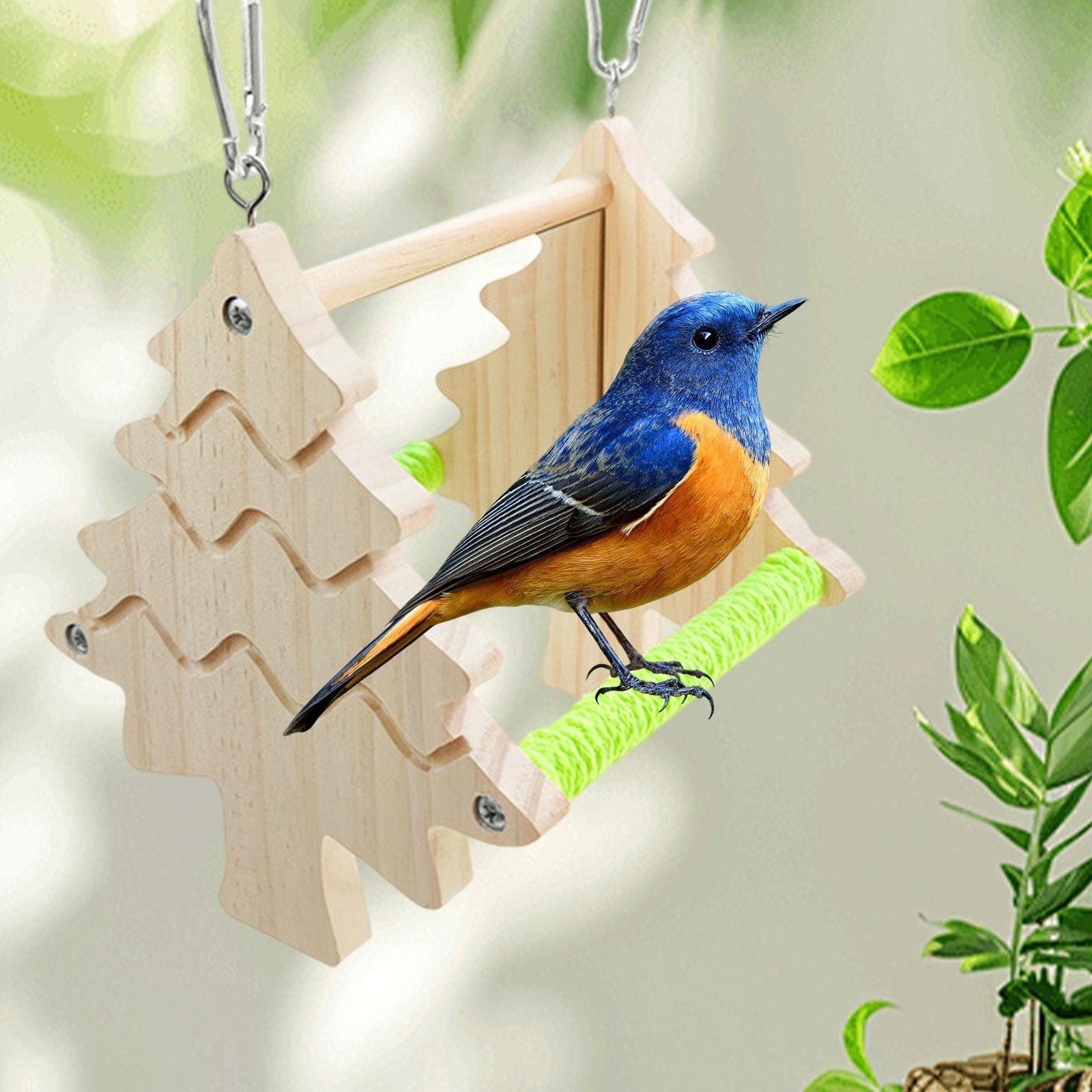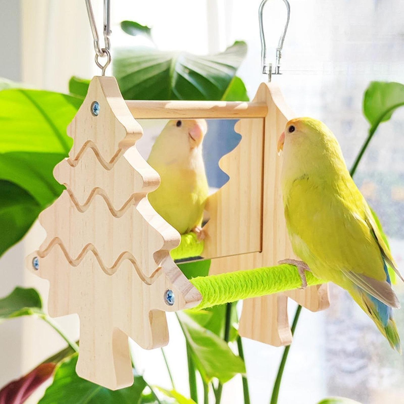 Double Sided Mirror Perch Toy for Parrot Bird Cage Accessory Decoration Chewing