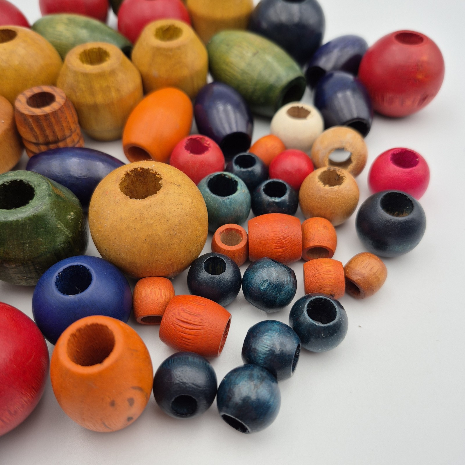 Large Lot of 65 Wooden Assorted Size Shape Color Macrame Beads Home Decor