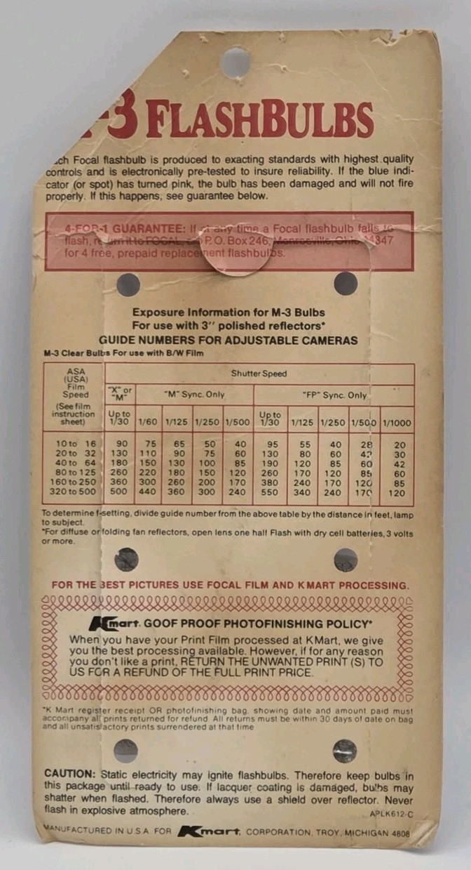 Focal M3 Flash Bulbs Photoflash Camera Clear Kmart VTG Lot Of 10