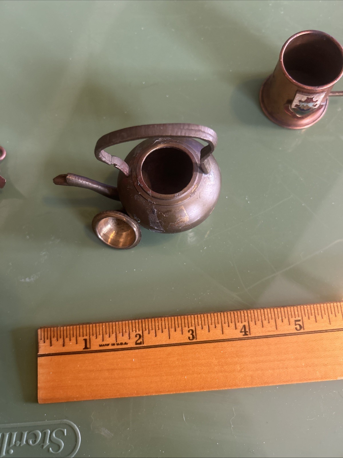 • Lot Of 6 Brass/Copper Mini Kitchen Toy Items