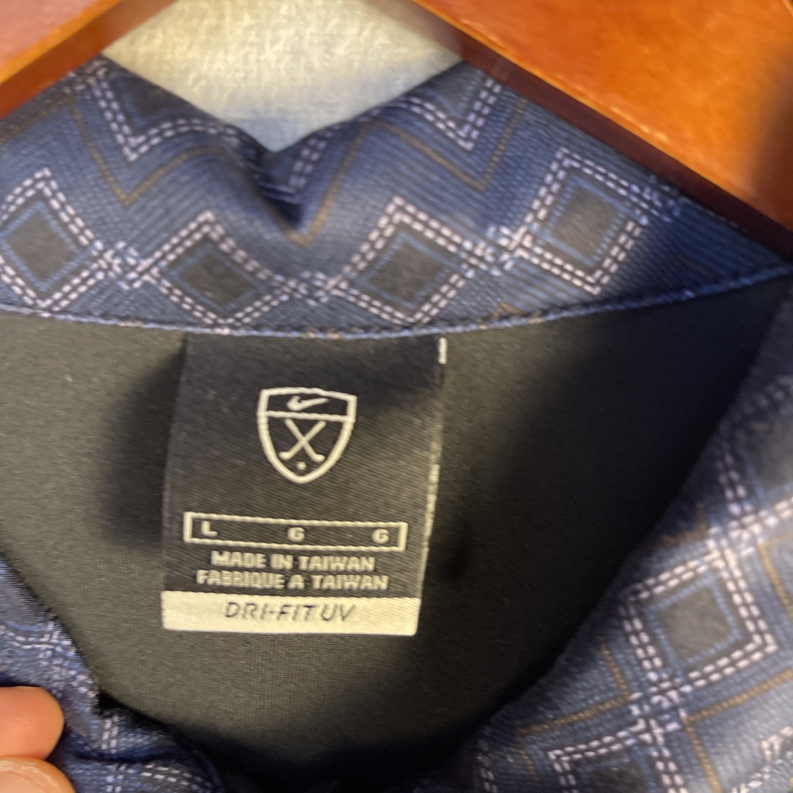 Nike Golf Polo Shirt Mens Large Blue Geometric Print Dri-Fit UV Protection