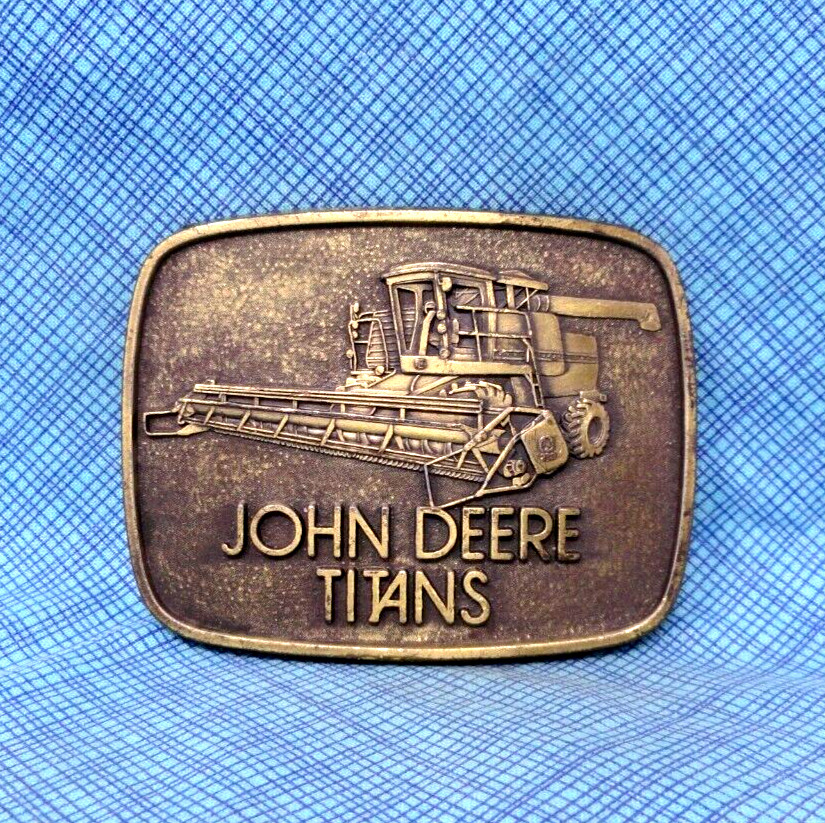 John Deere Titans Tractor Promo Belt Buckle Farmer Vtg 1980 Deere Co .QRT676
