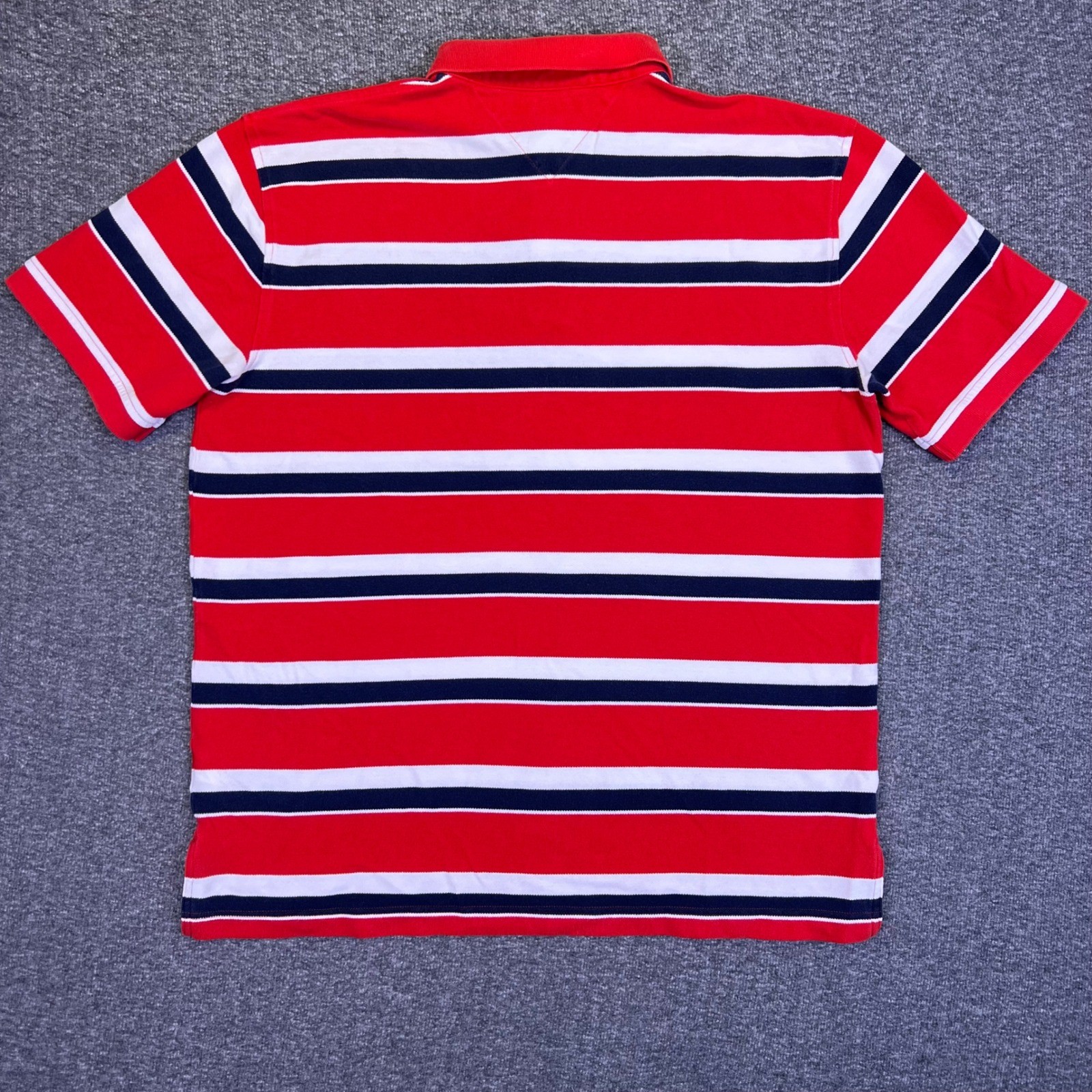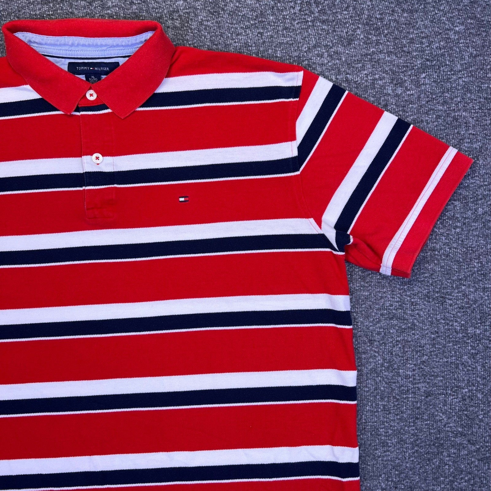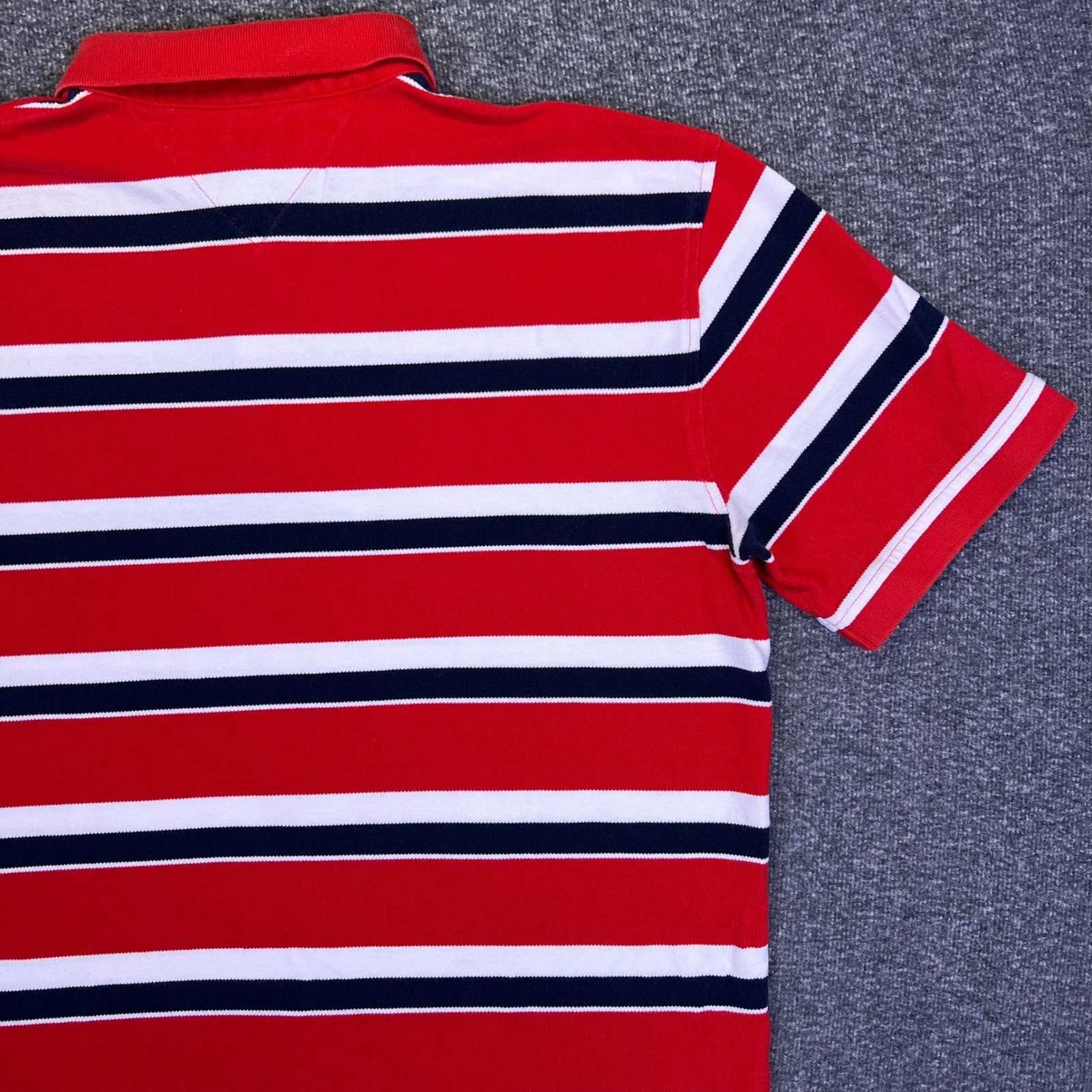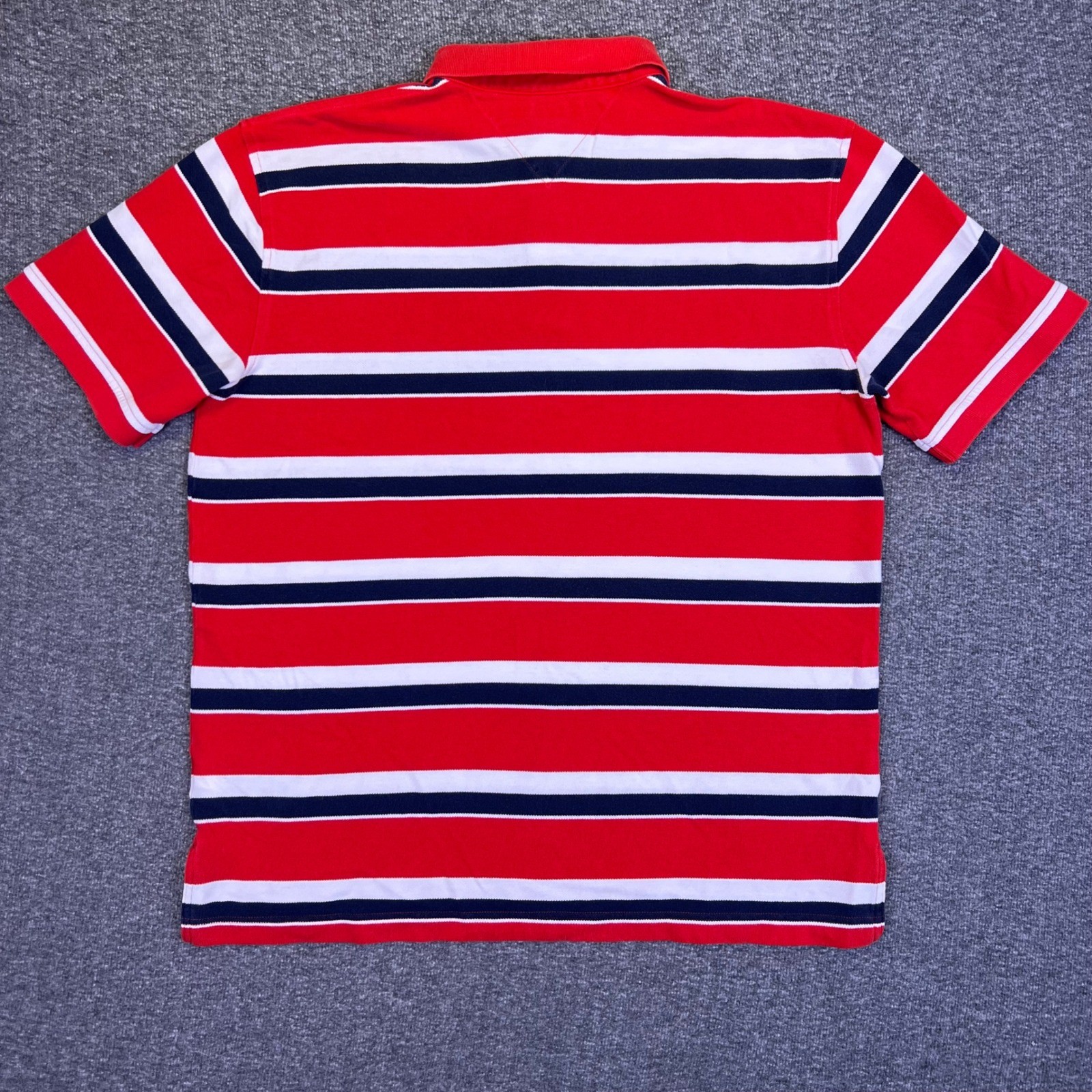 Tommy Hilfiger Polo Shirt Mens XL Red White Striped Casual Preppy Nautical Golf