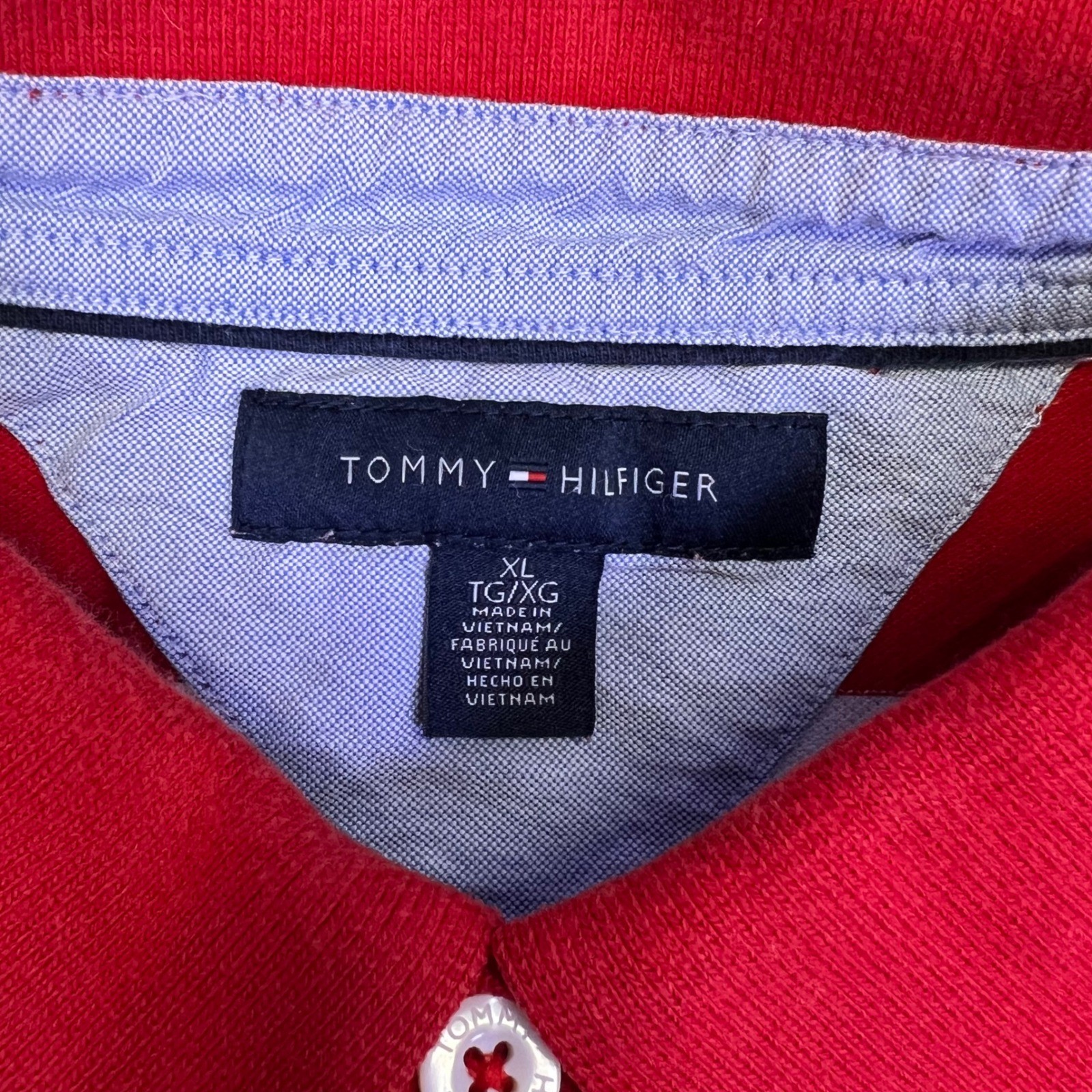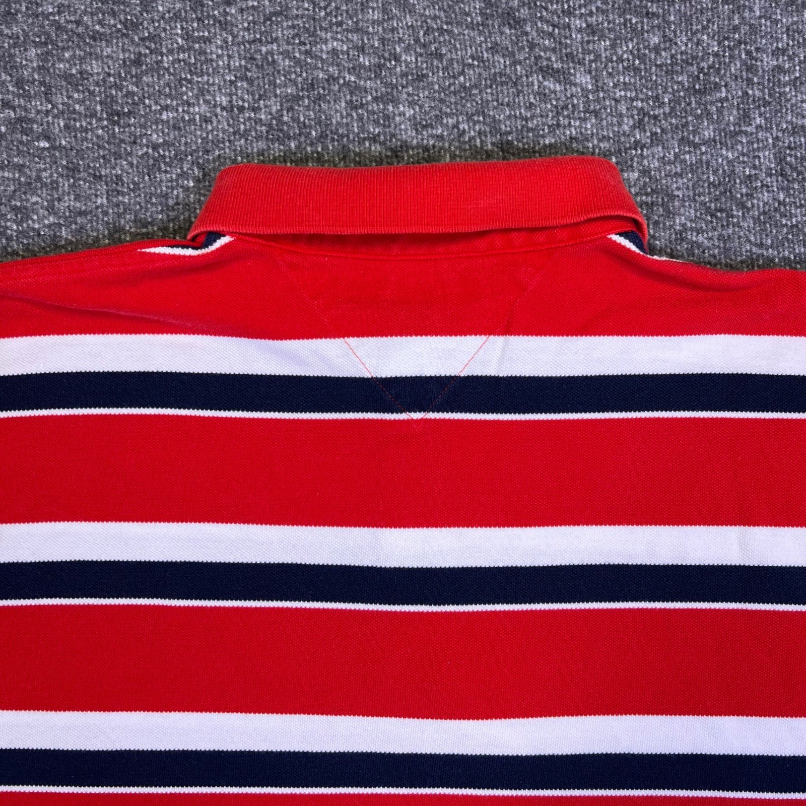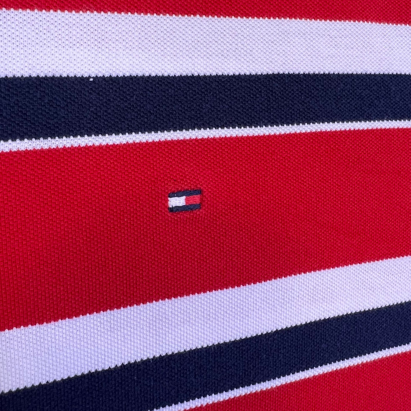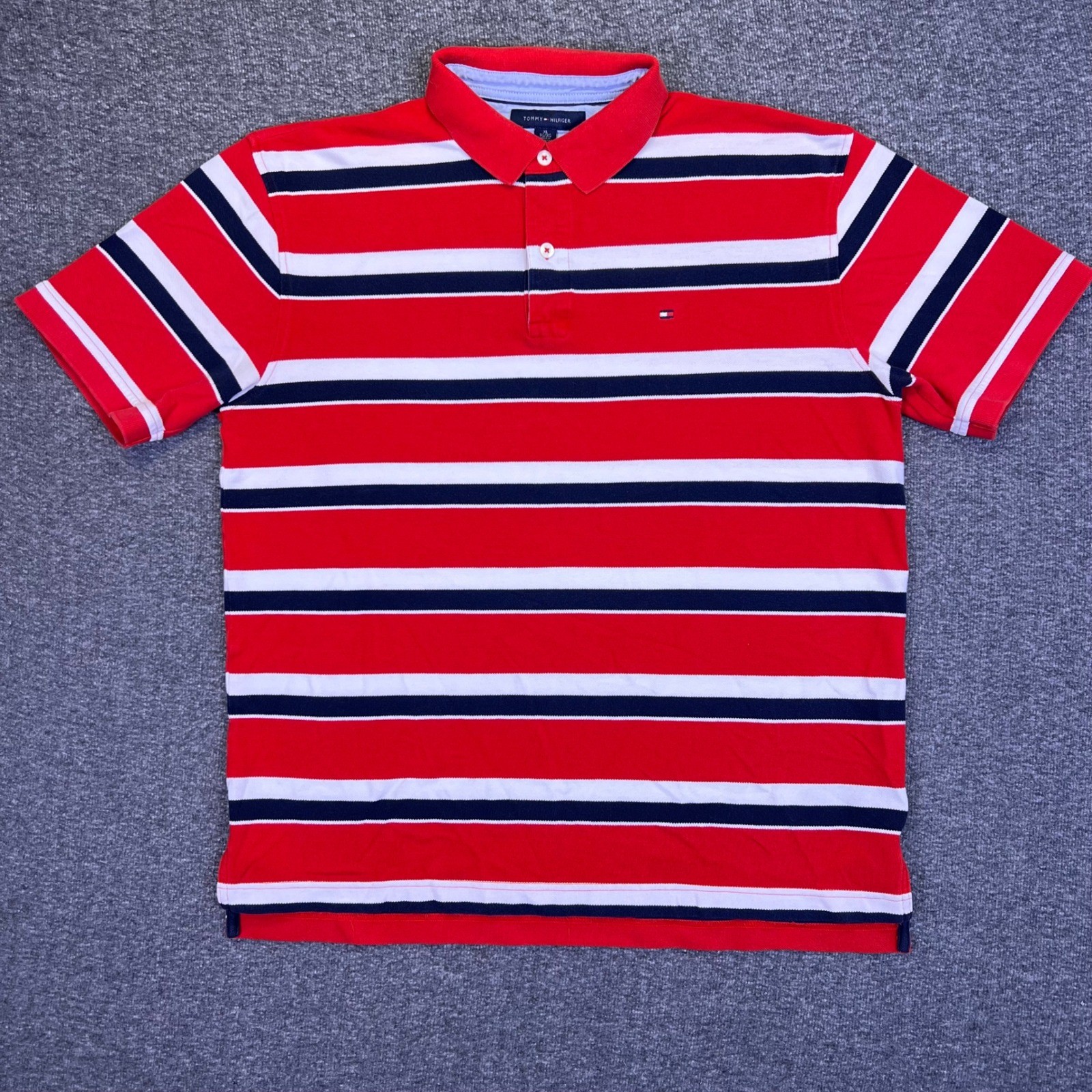 Tommy Hilfiger Polo Shirt Mens XL Red White Striped Casual Preppy Nautical Golf