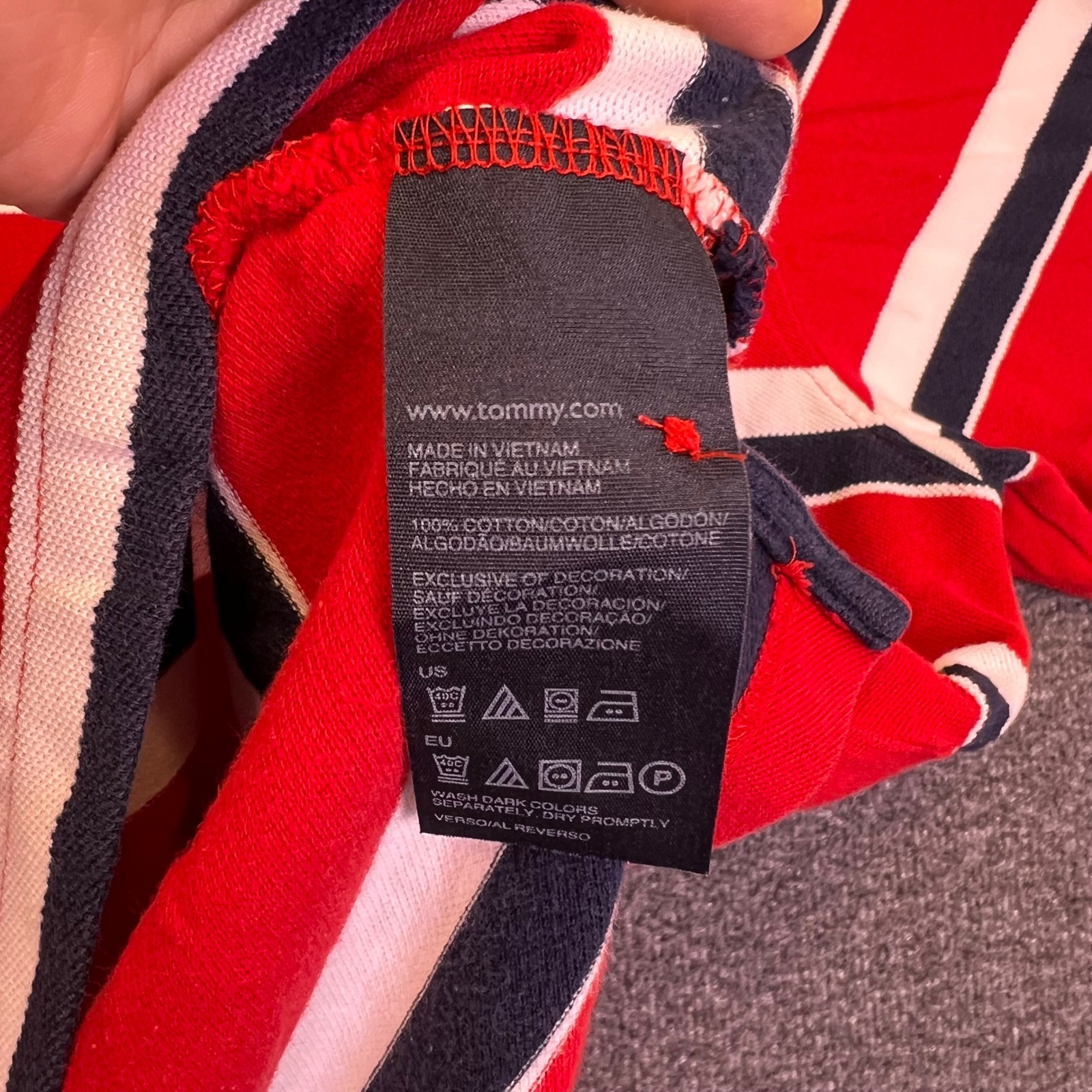 как выглядит Tommy Hilfiger Polo Shirt Mens XL Red White Striped Casual Preppy Nautical Golf фото