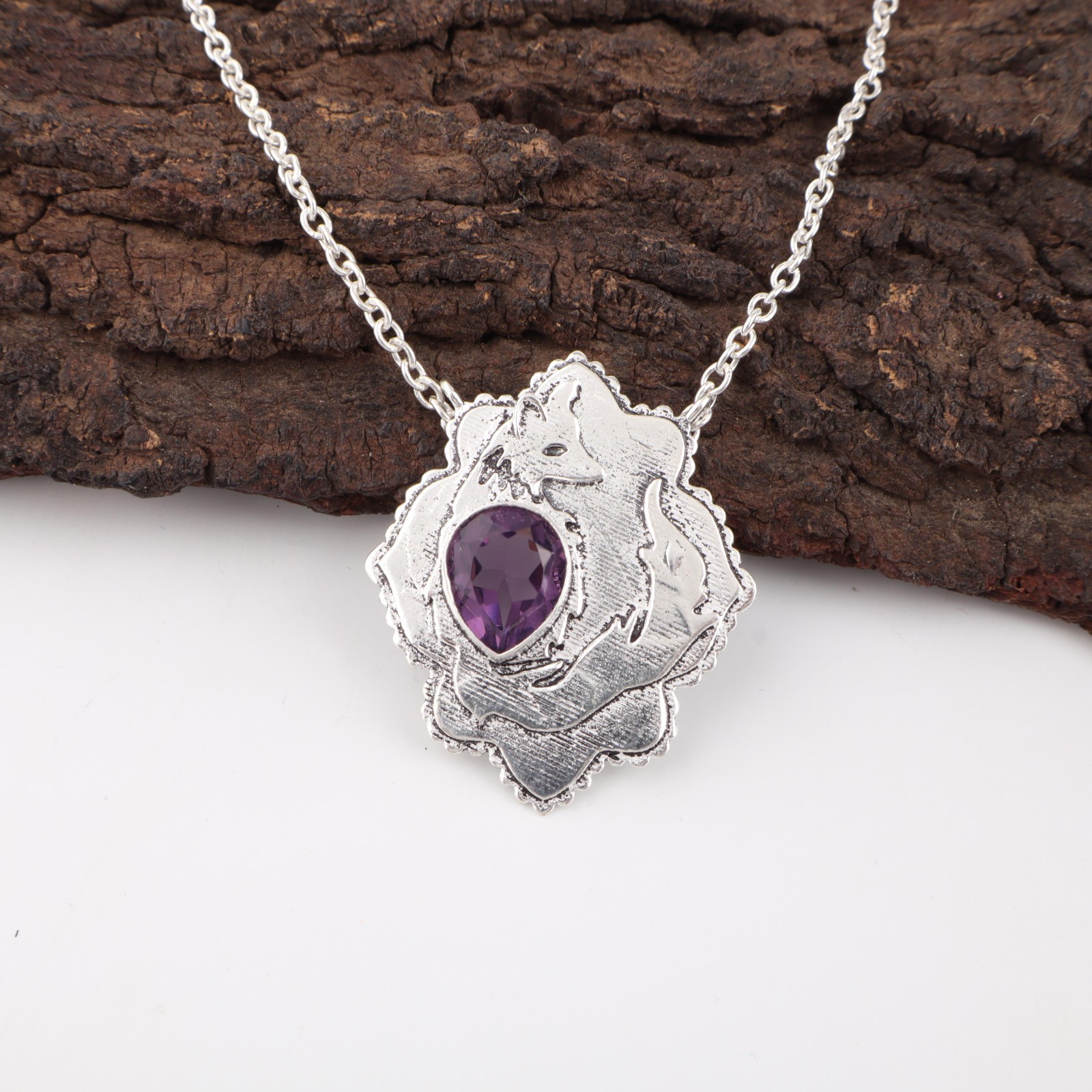 Pear Genuine Amethyst February Birthstone Sister Boho Wedding Pendant 925 Silver