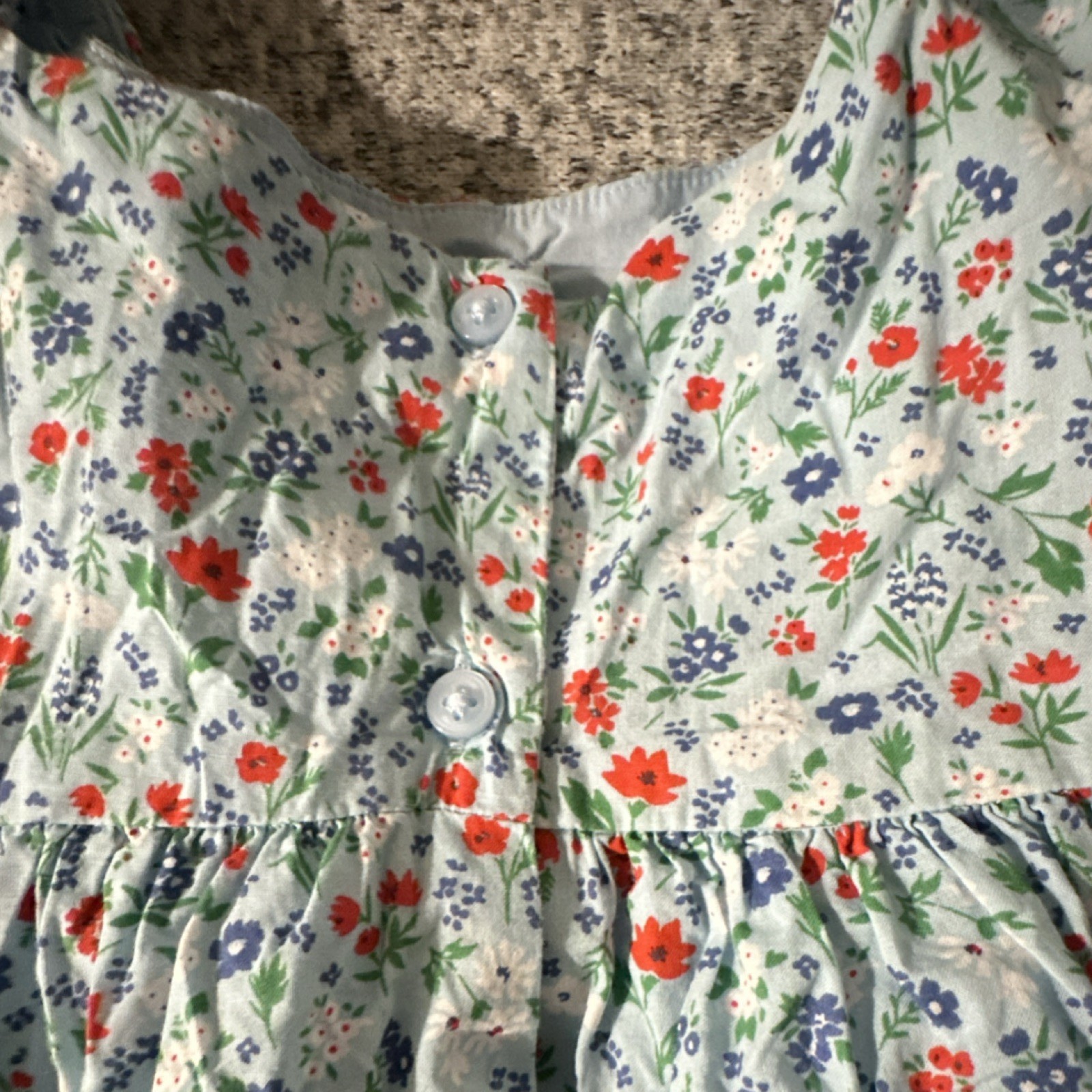 как выглядит Janie and Jack Girls A-Line Dress Blue Floral Button Flutter Sleeve Size 3 фото