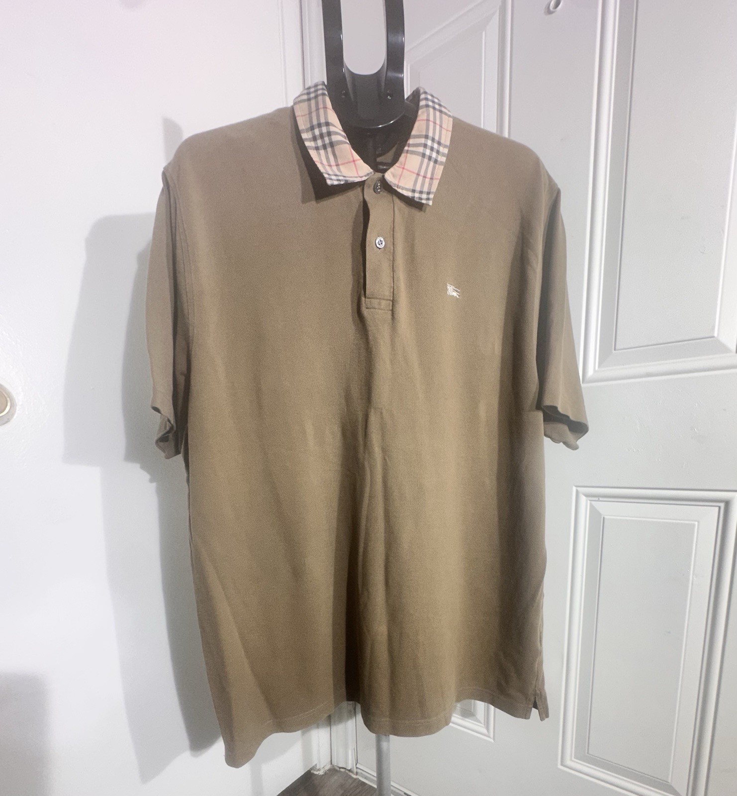 Vintage. Burberry Nova Check Collar Knit Polo Shirt Size XXL.100 Cotton