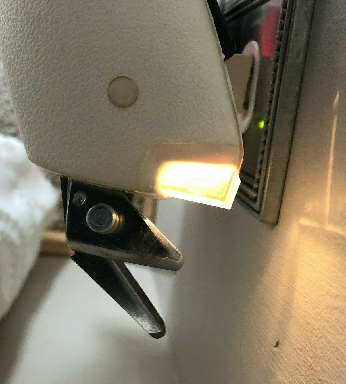 как выглядит Vintage White Electric Scissors with Guide Light Two Speed Sewing Machine WORKS фото