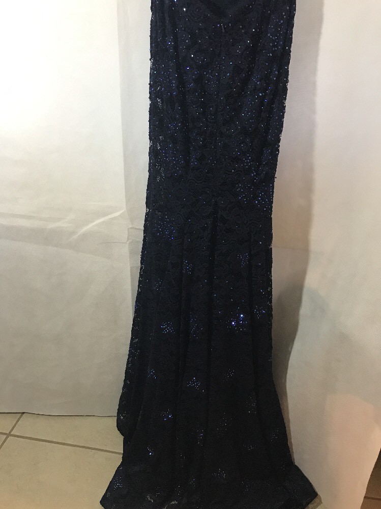 как выглядит NEW 568 La Femme 2 Rhinestone Lace Gown in Navy Blue M890 фото