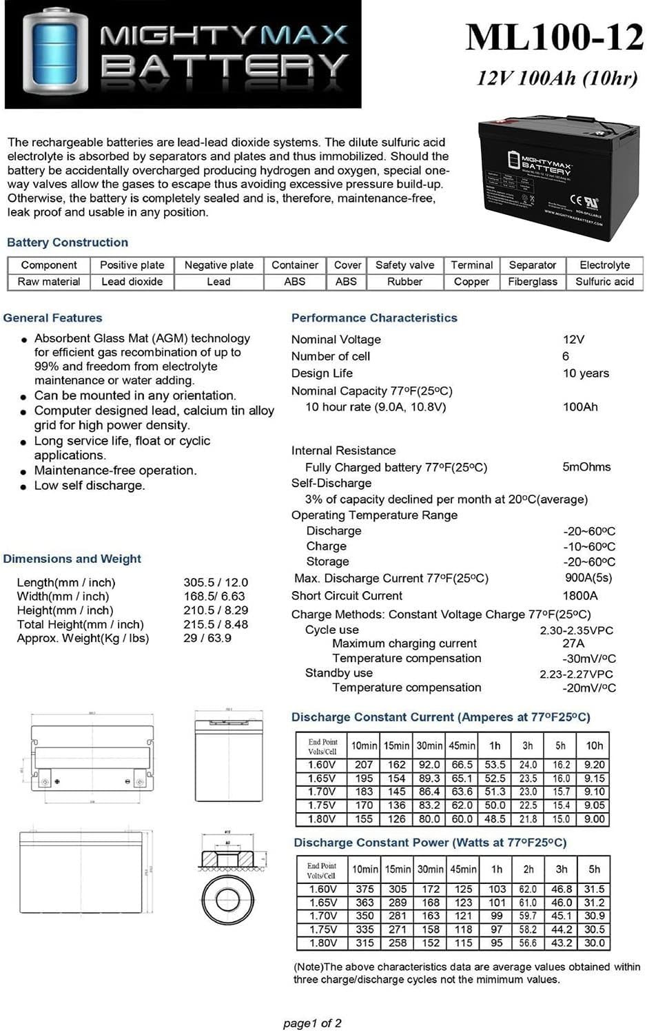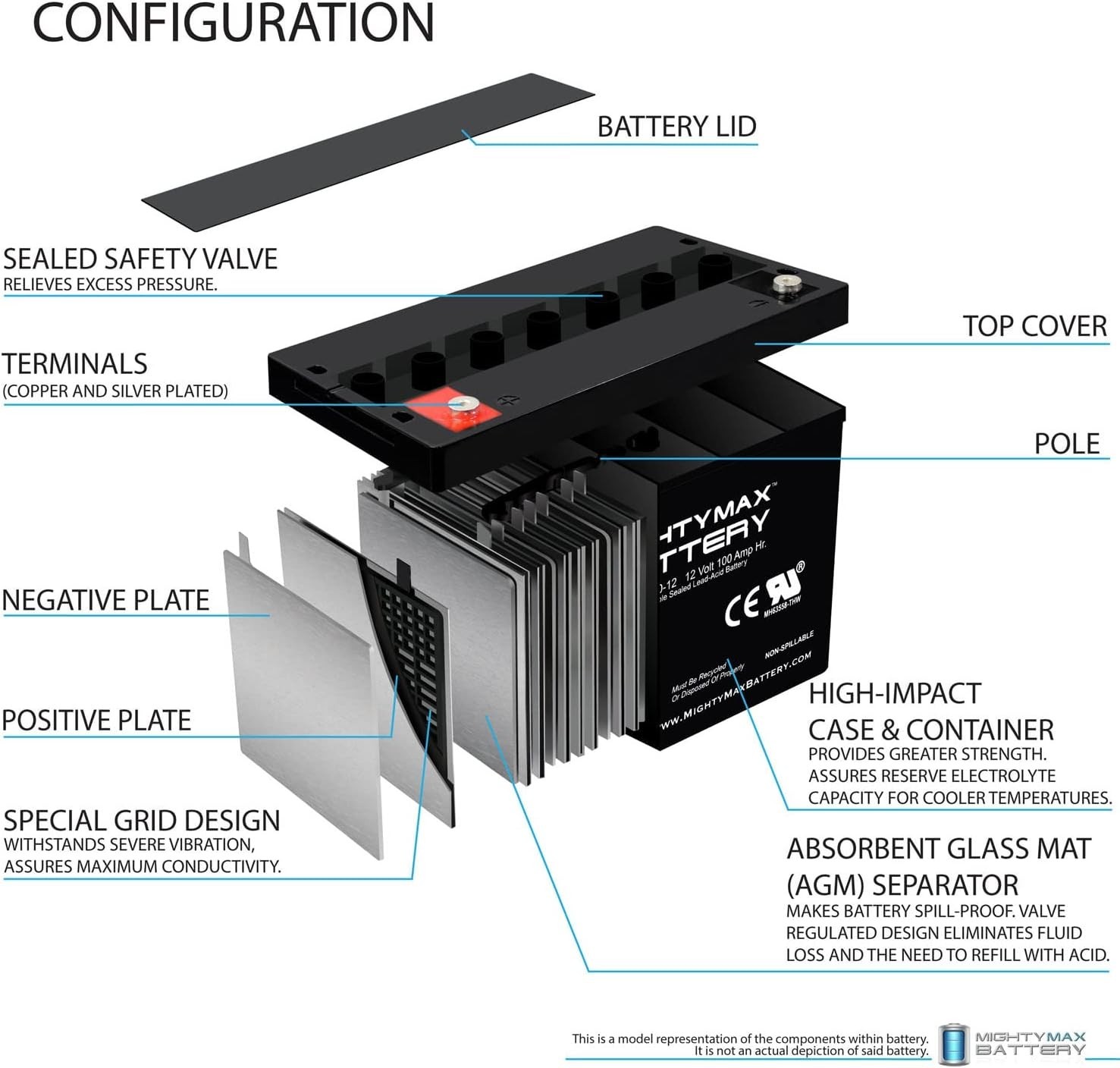Mighty Max ML100-12 - 12 Volt 100 AH Internal Thread INT Terminal Rechargeable