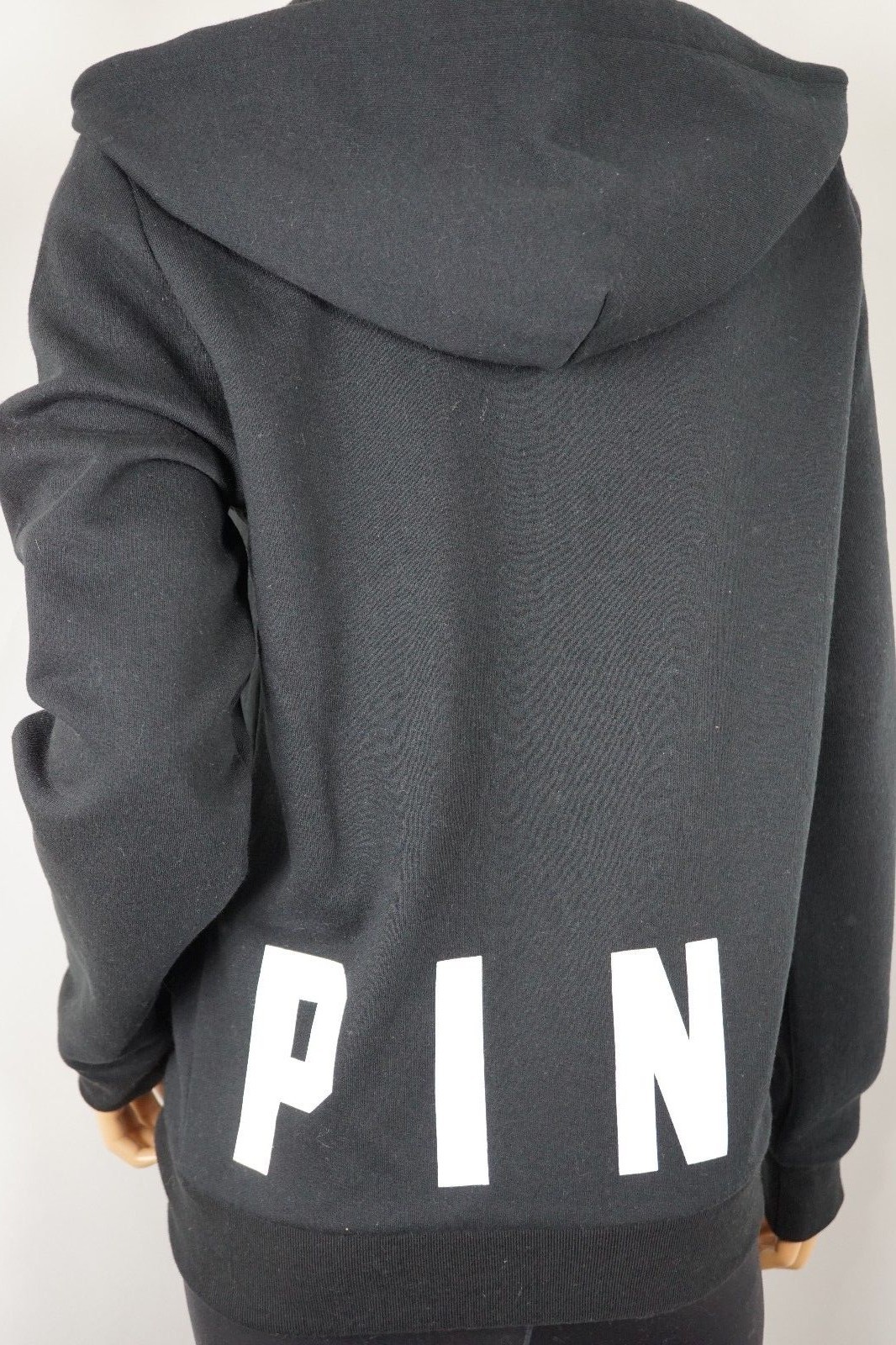 как выглядит VICTORIAS SECRET PINK BLACK PERFECT FULL-ZIP HOODIE M фото