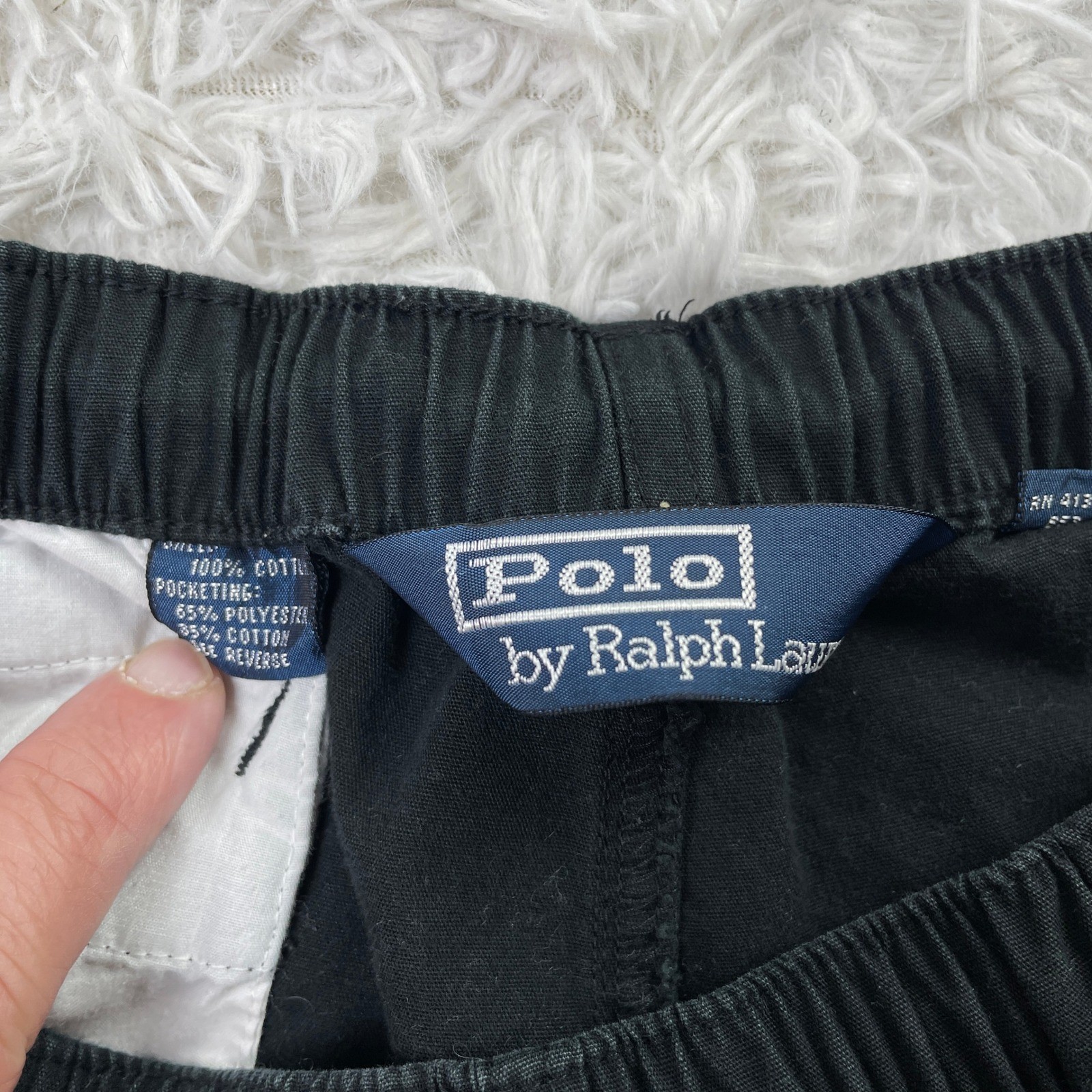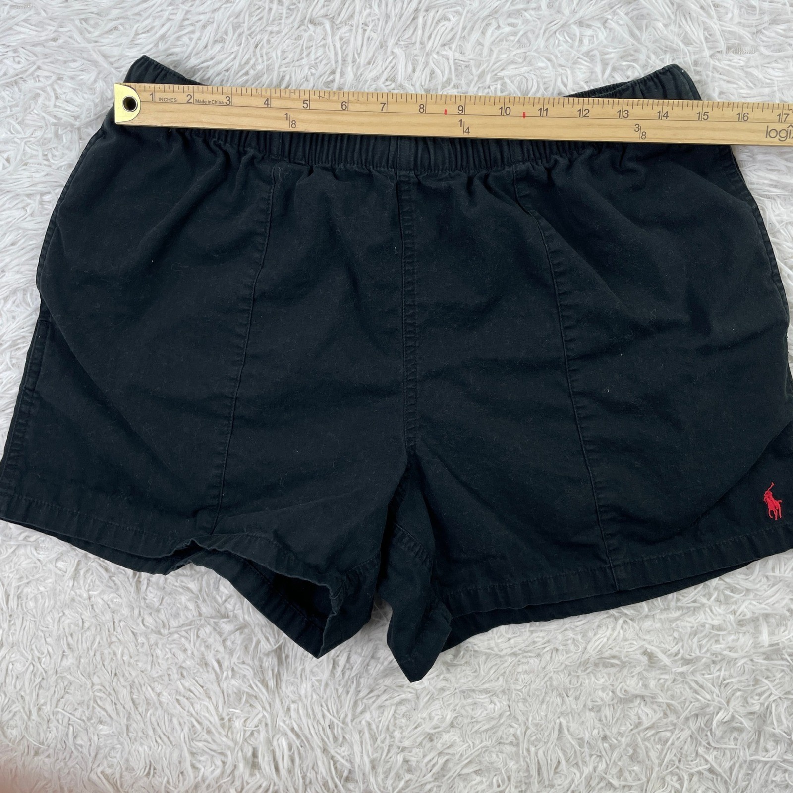 как выглядит VTG Polo Ralph Lauren Shorts Mens Medium Black Elastic Waist 4" Chinos Casual M фото