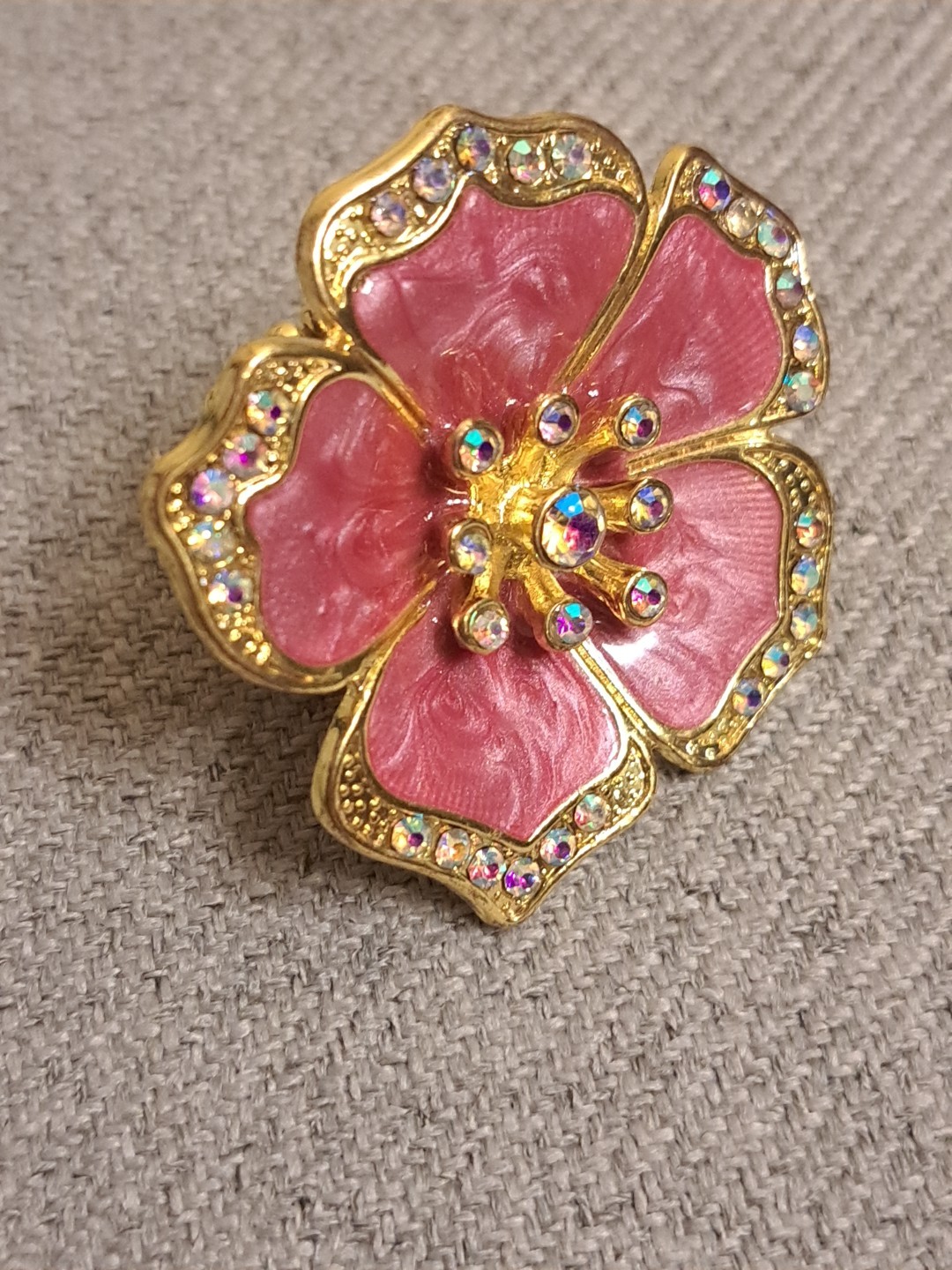 Gold Tone Stretch Metal Flower Ring With Crystal Rhinestones