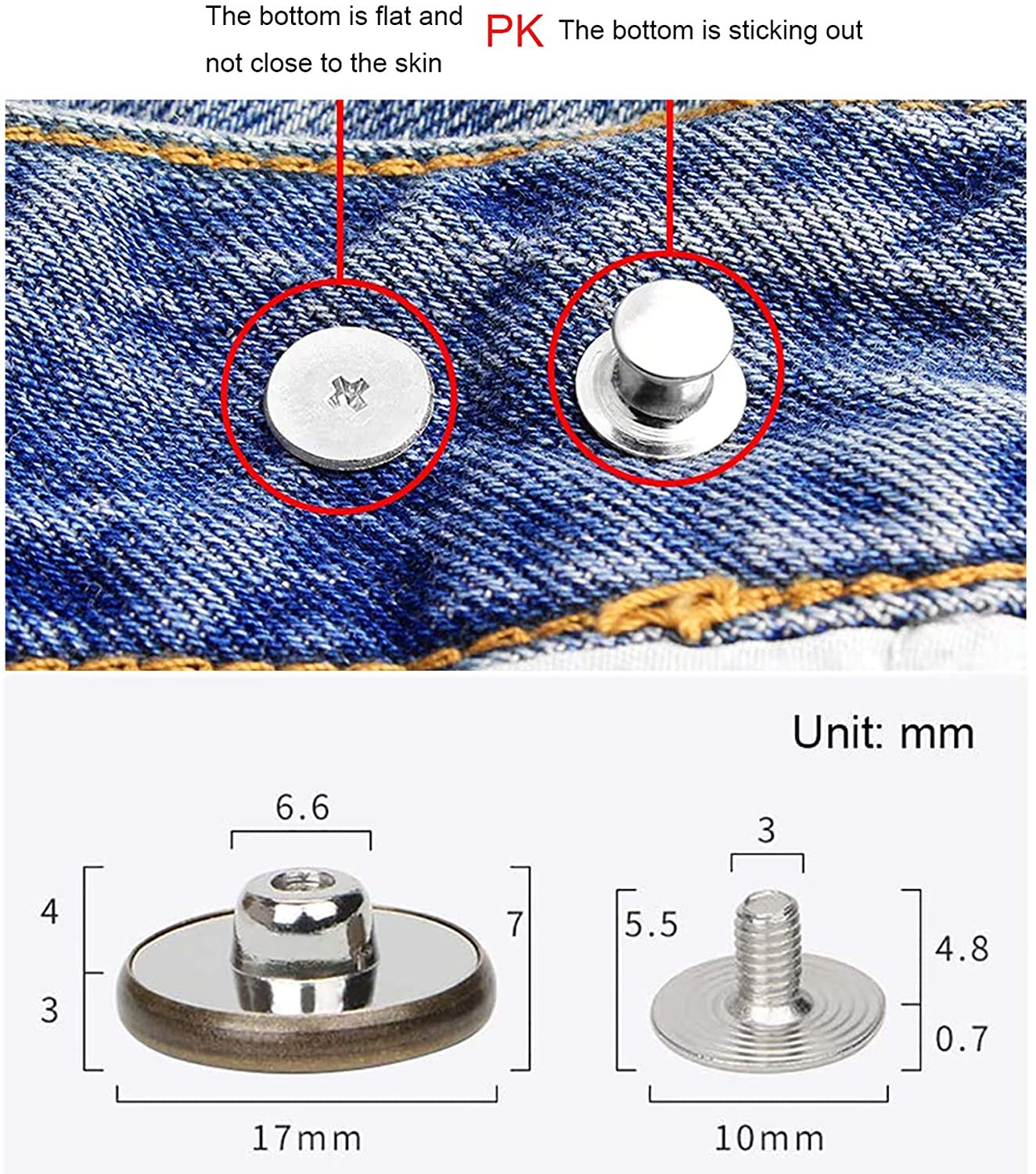 12 Pcs Button for Sewing Metal Jeans, 17 Mm No-Sew Nailess Removable Metal Jeans