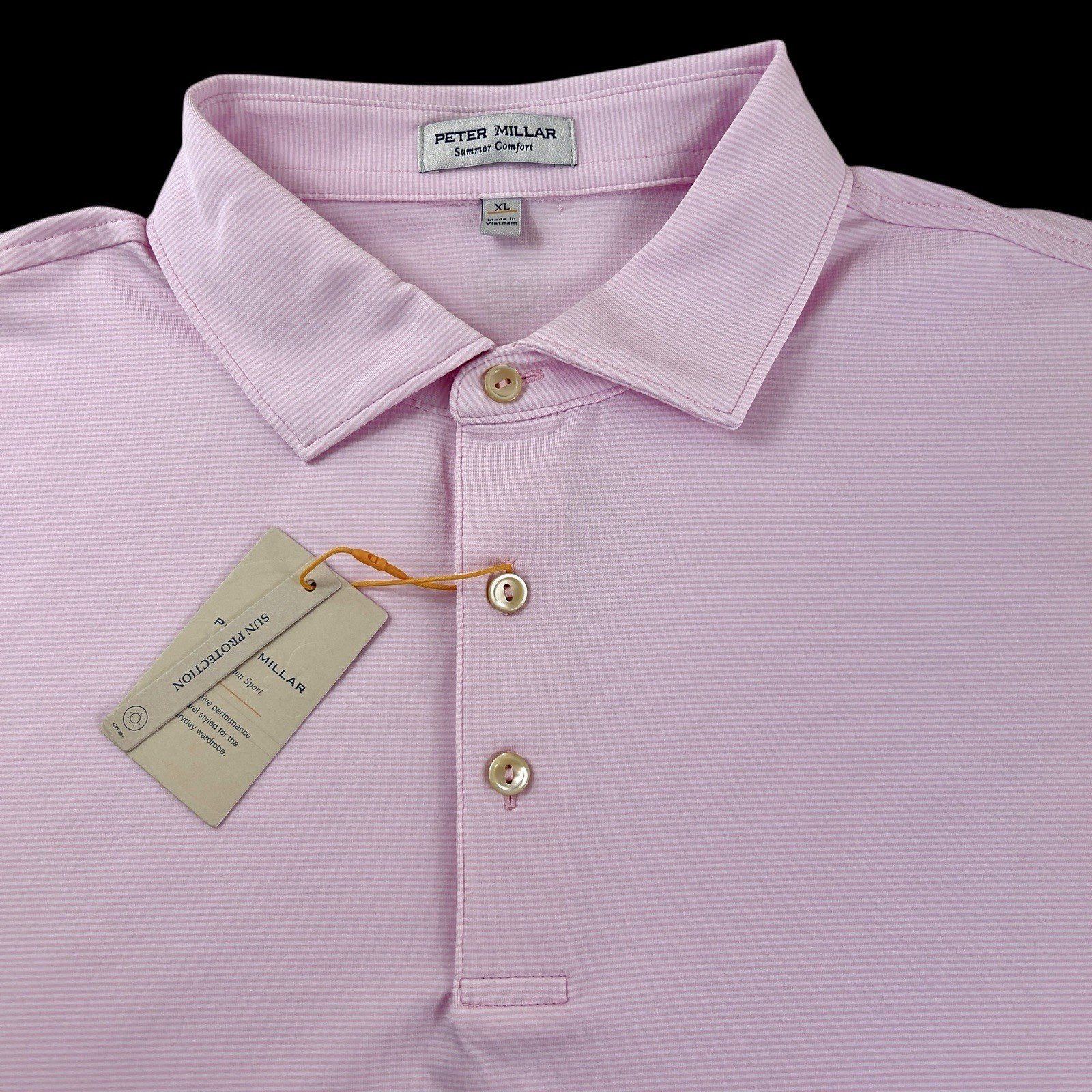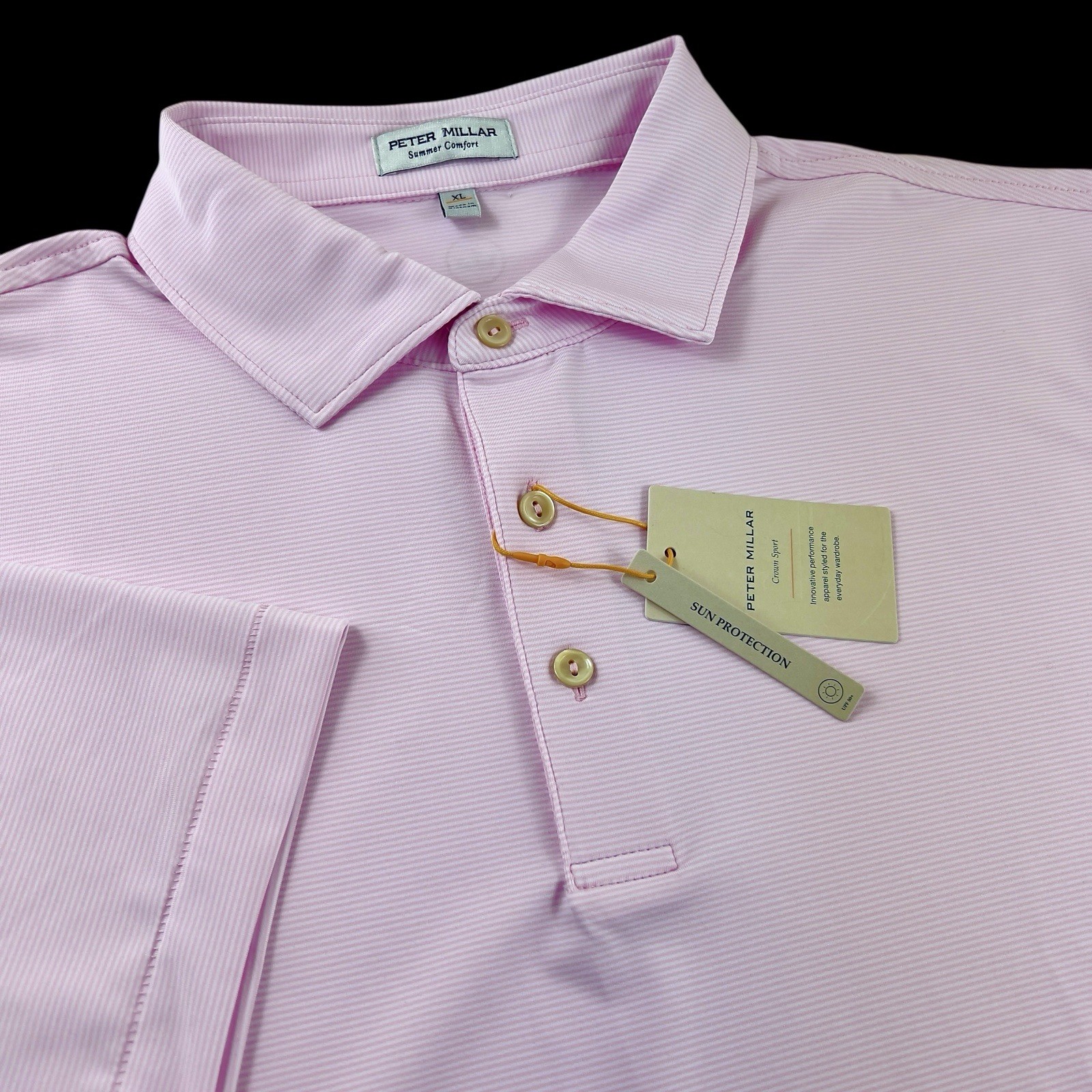 Peter Millar Crown Summer Comfort Performance Striped Light Pink Polo Shirt XL