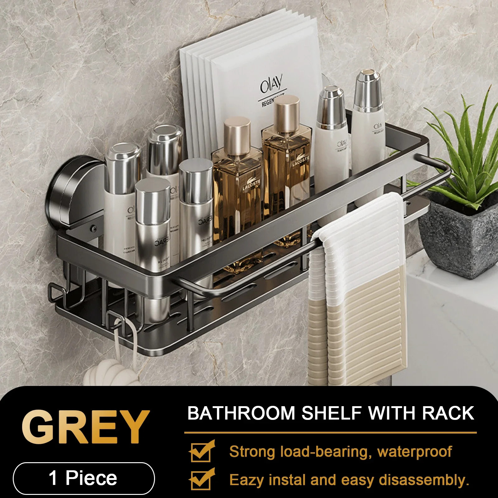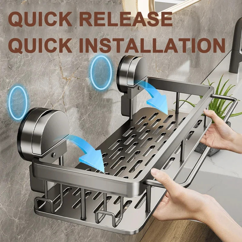 Suction Cup Bathroom Shelf No Drill Wall Mounted Shampoo Bottle Shower Rack Toil