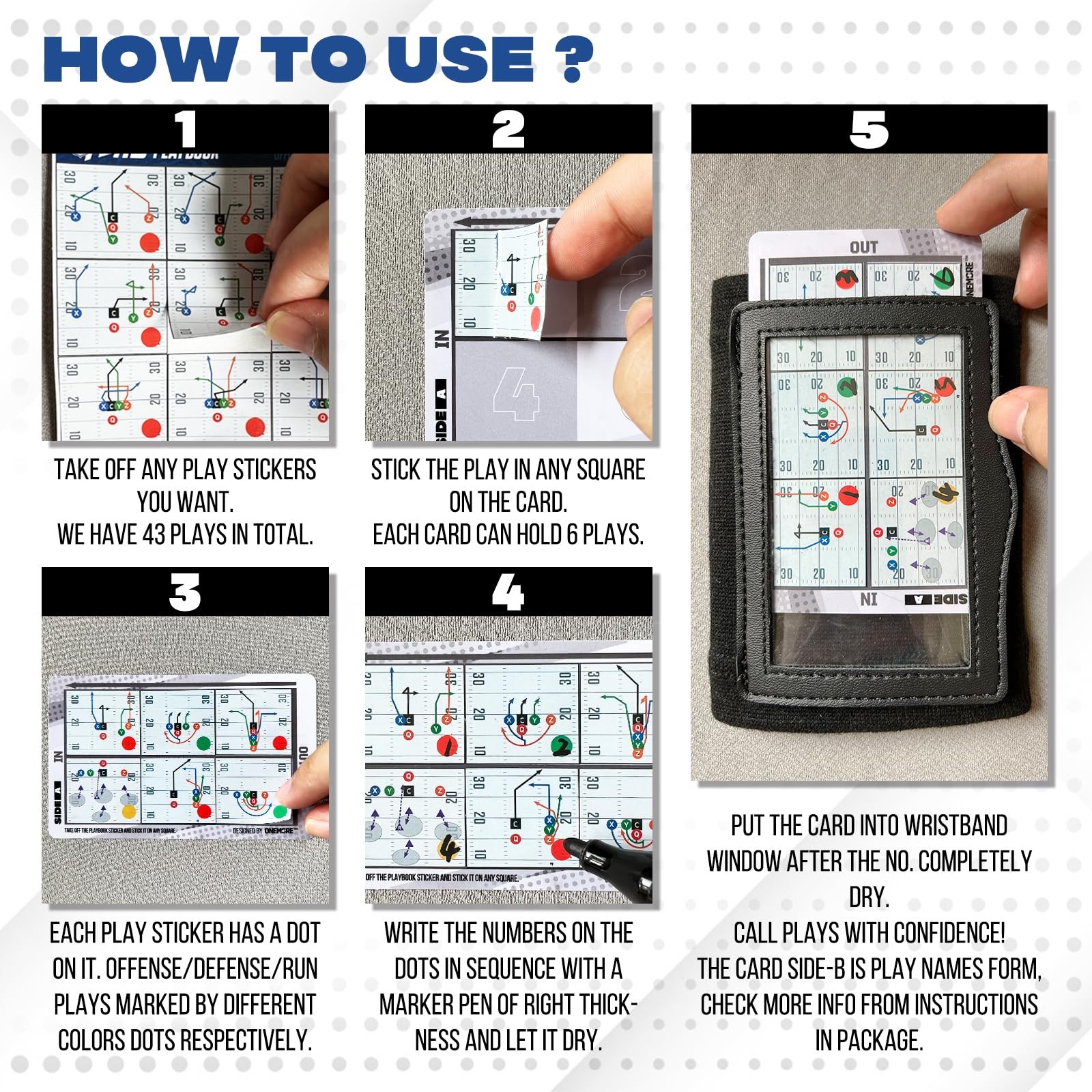 как выглядит 1NMORE Football Wristbands with Playbook System, Quarterback QB Wrist Coach... фото