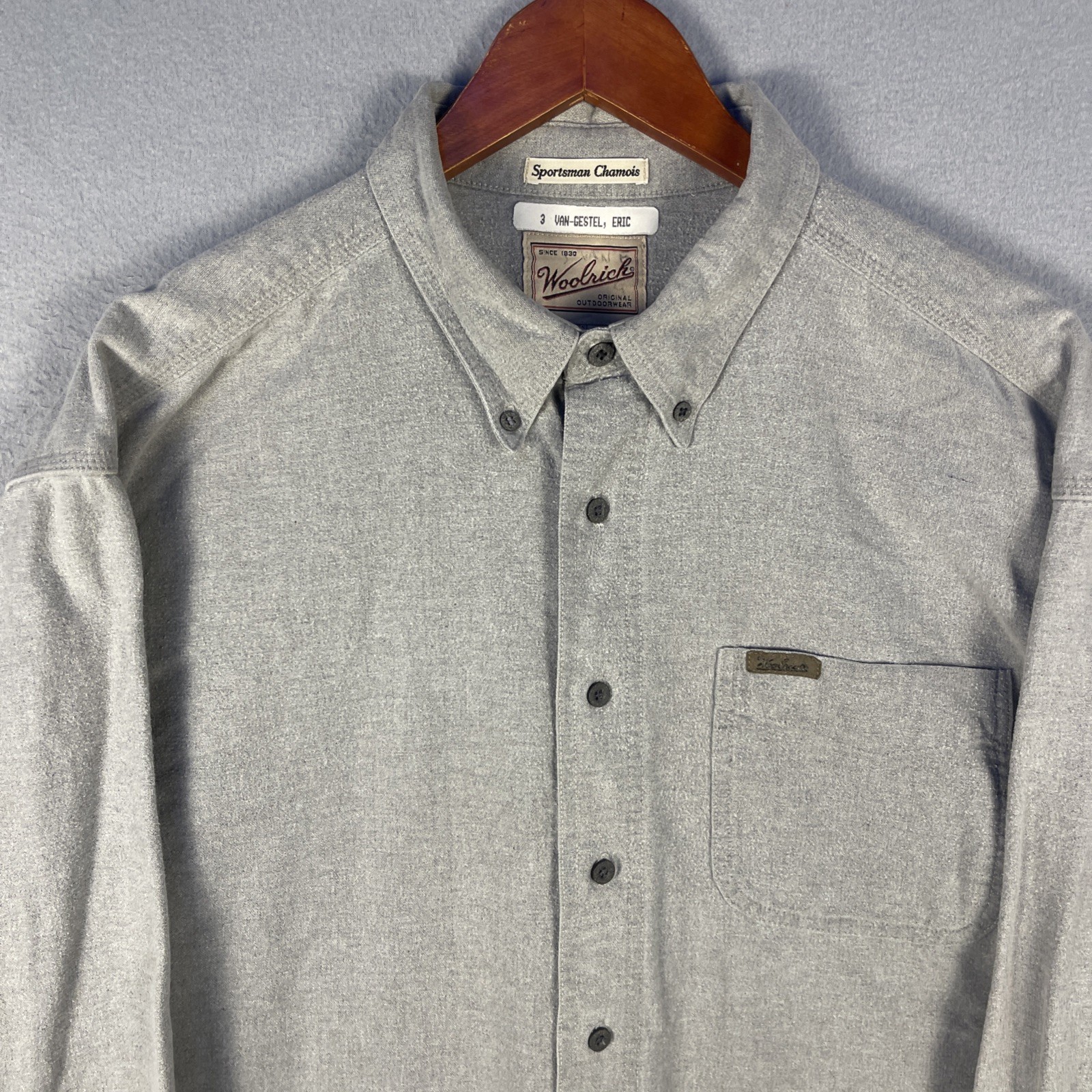 как выглядит Vintage Woolrich Sportsman Chamois Shirt Mens XL Gray Pocket Long Sleeve Outdoor фото