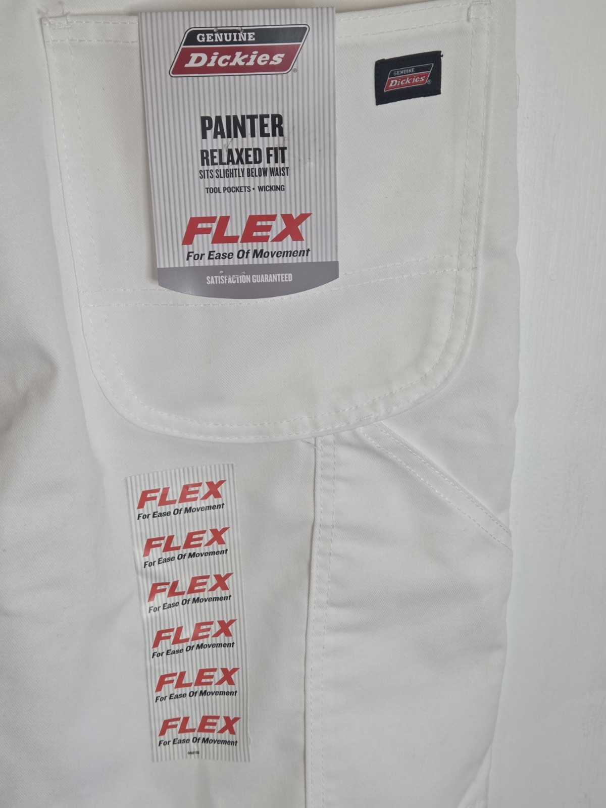 New With Tags Men's White Dickies Painter Relaxed Fit Flex Pants Size 38x30