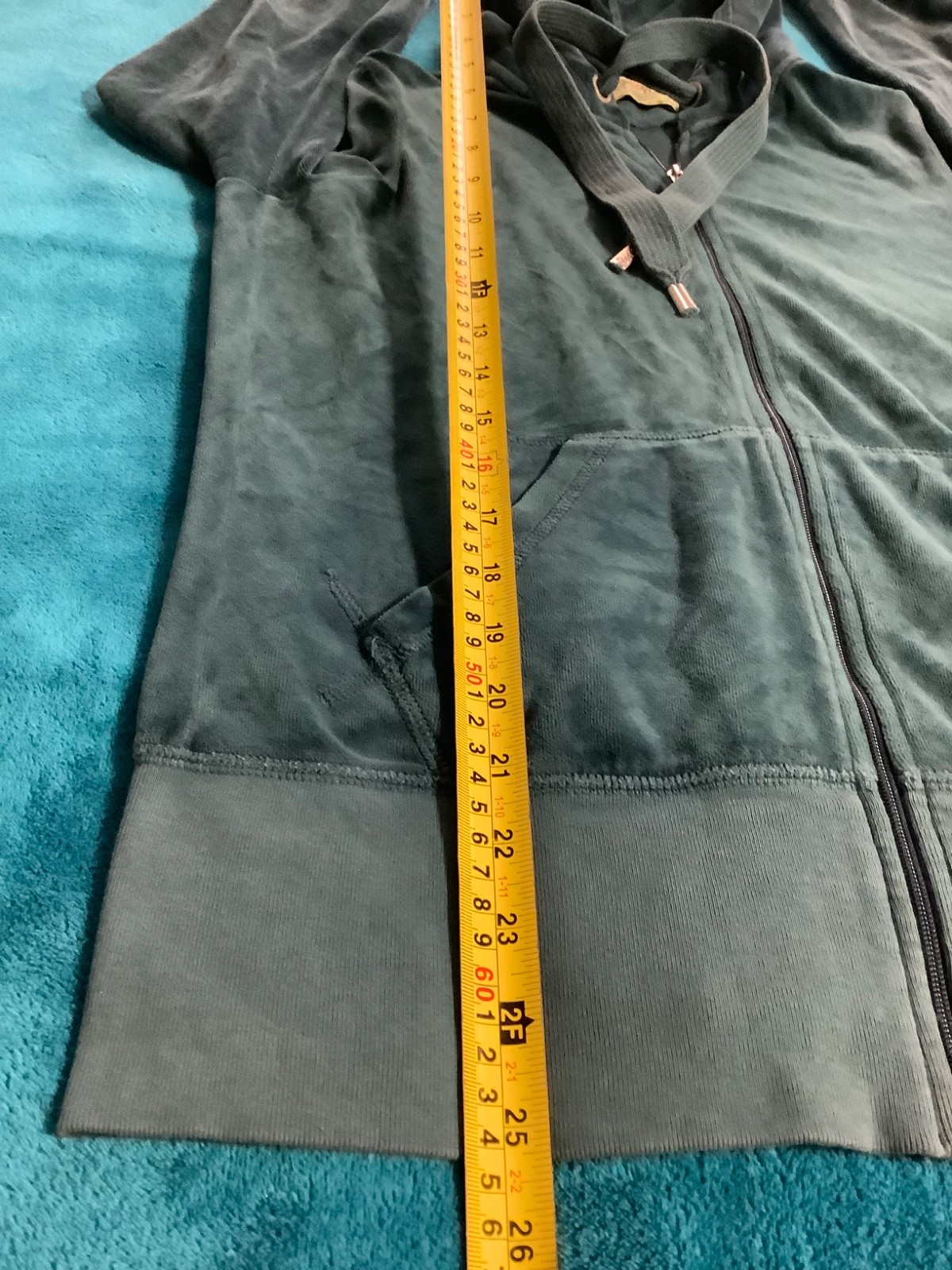 как выглядит Juicy Couture 90s Teal Velour Zip Up Hoodie Straight Leg Low Rise Pants 34 x 33 фото