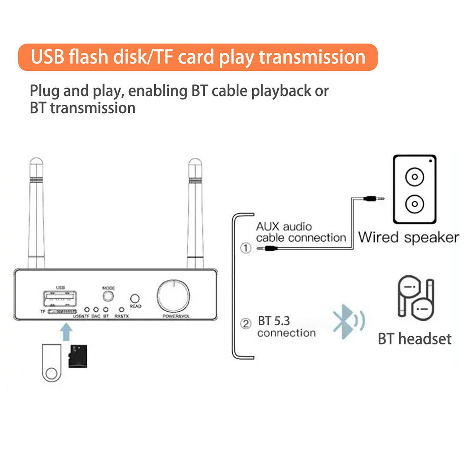 Bluetooth 5.3 Transmitter Receiver Host Audio Adapter With Remote Control