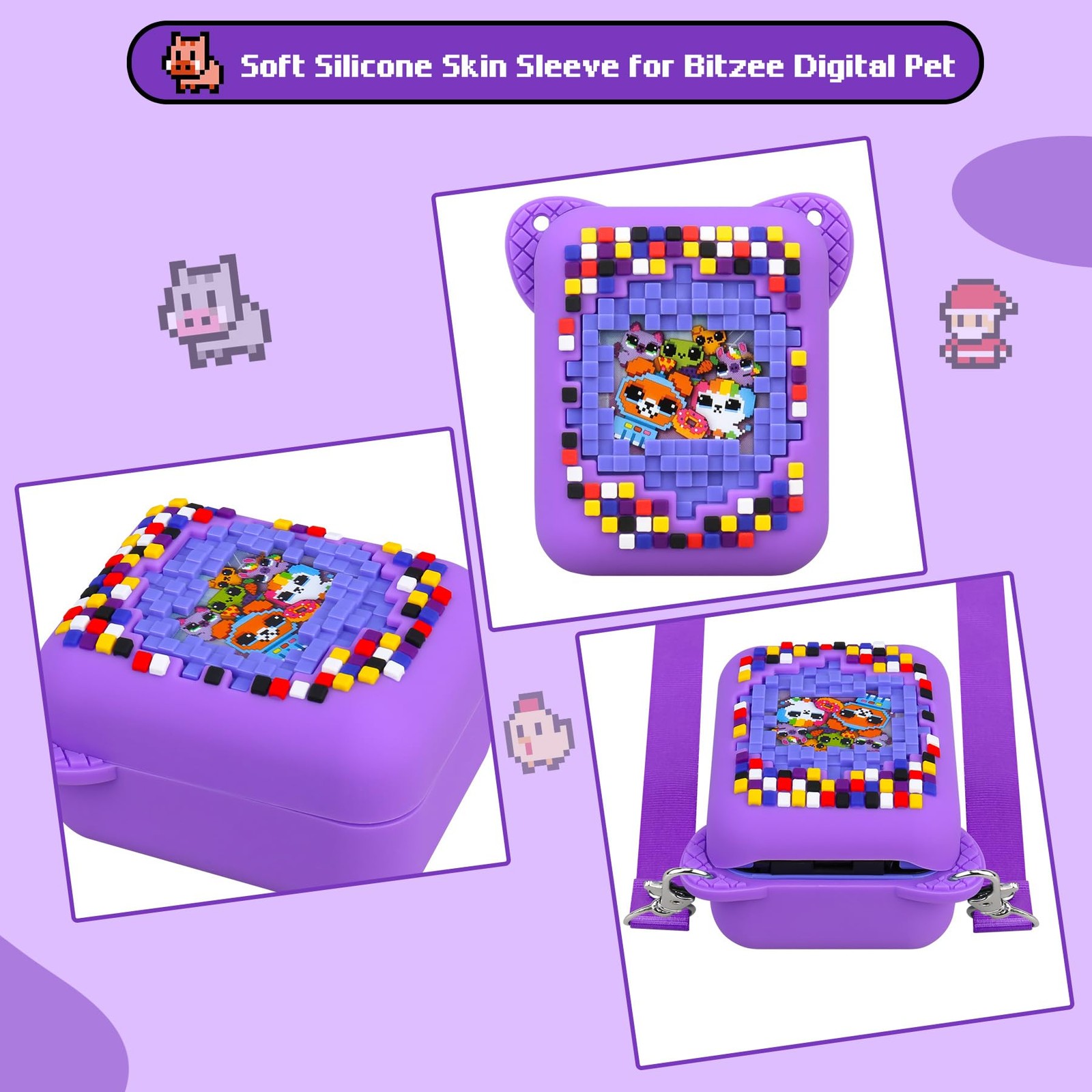 BOVKE Silicone Cover Case for Bitzee Interactive Toy Digital Pet with Purple
