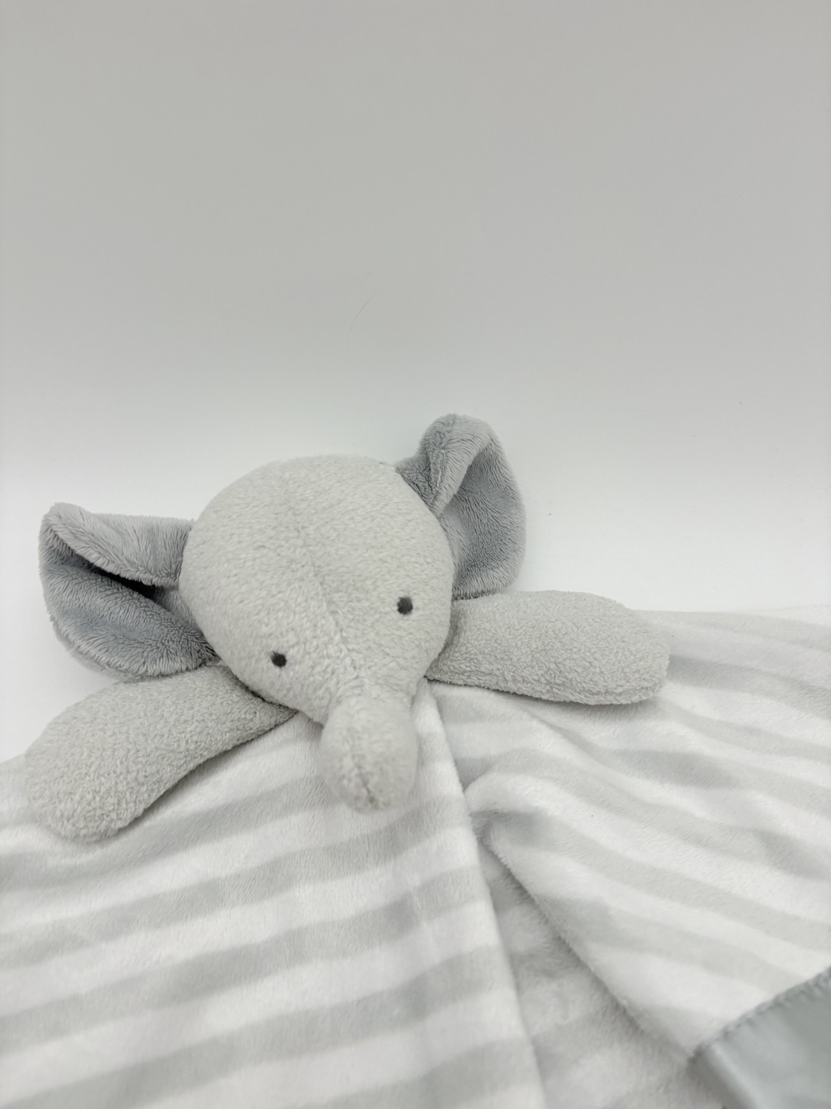 как выглядит Cloud Island Elephant Blanket Lovey Plush Gray White Striped Target Nursery 6 фото