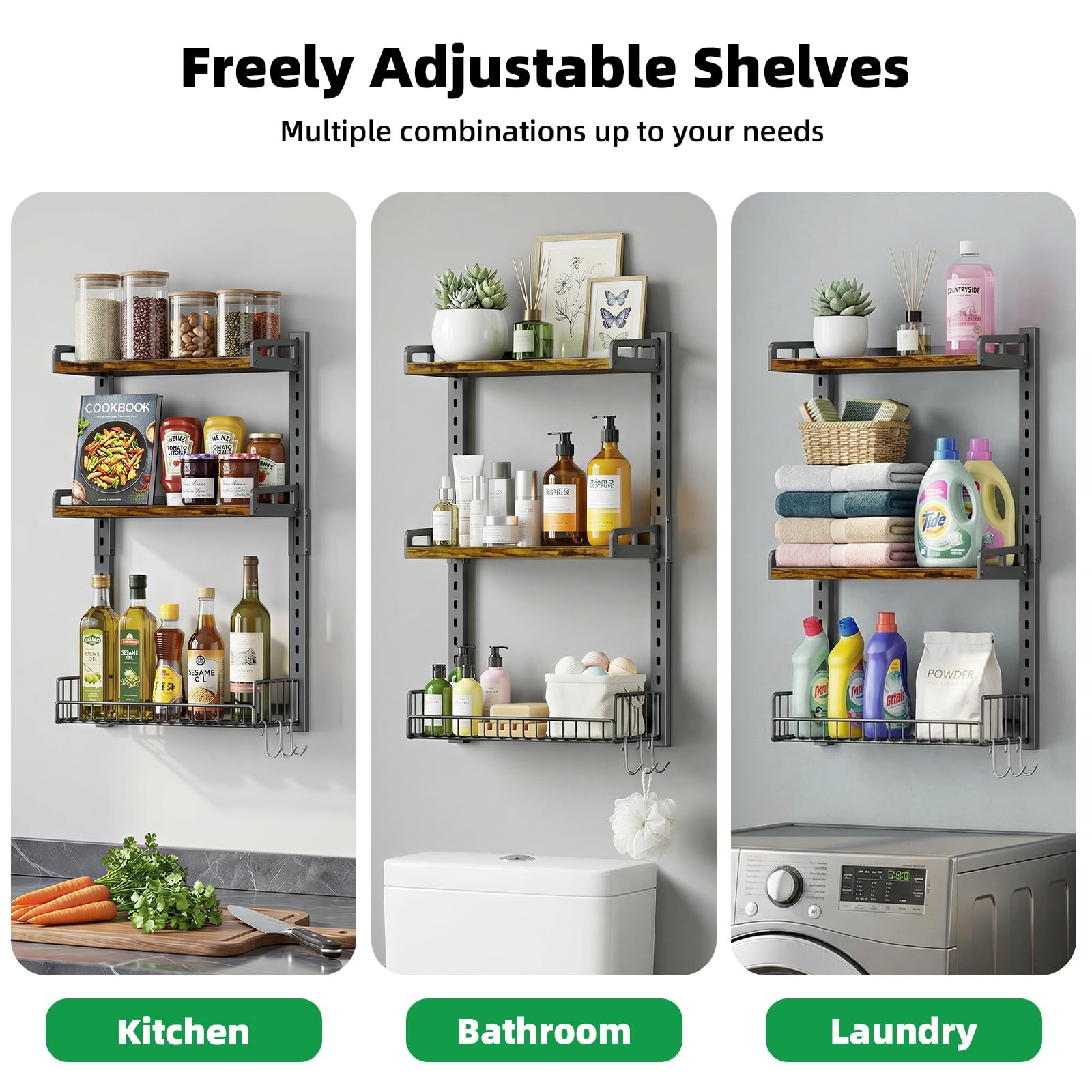 3 Tier Bathroom Shelves Over Toilet - Wall Mounted Floating Shelves with Drai...