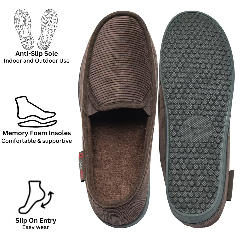 Alpine Swiss Wide Mens Slippers Steve Moccasin House Shoes Memory Foam Insole