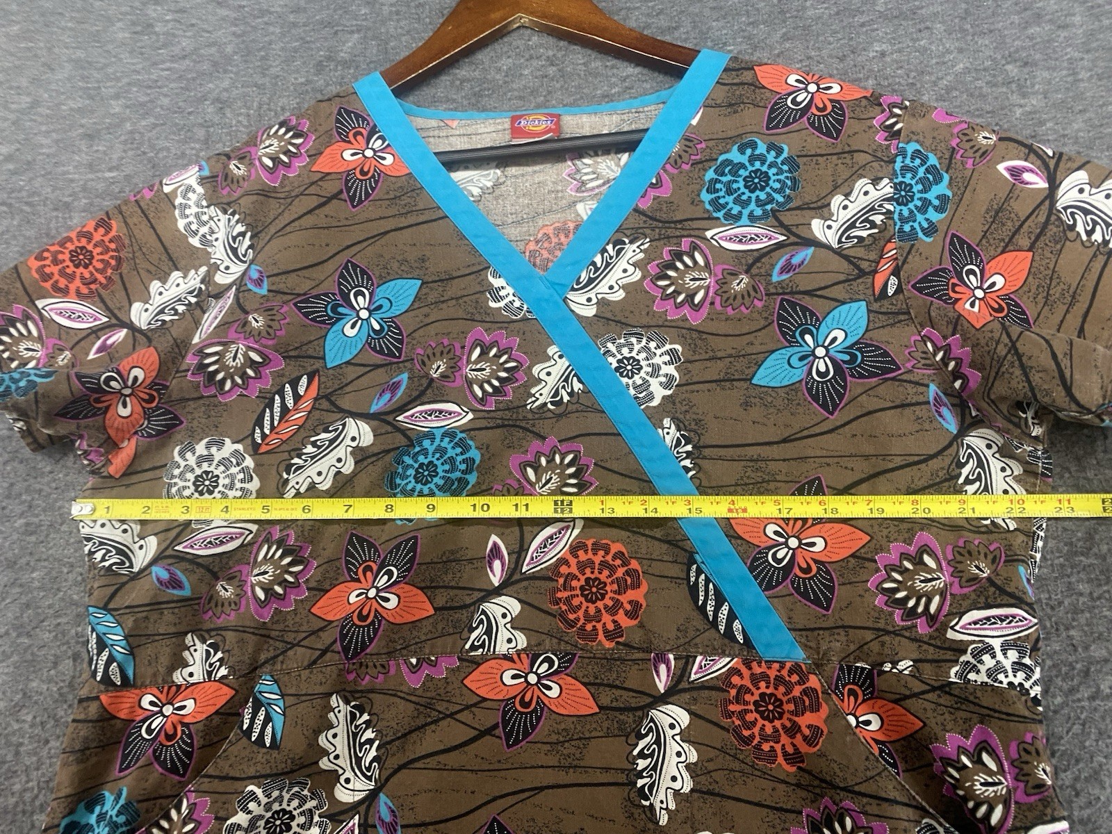 как выглядит Dickies Floral Scrub Top Women s Size Medium Multicolor V-Neck Short Sleeves фото