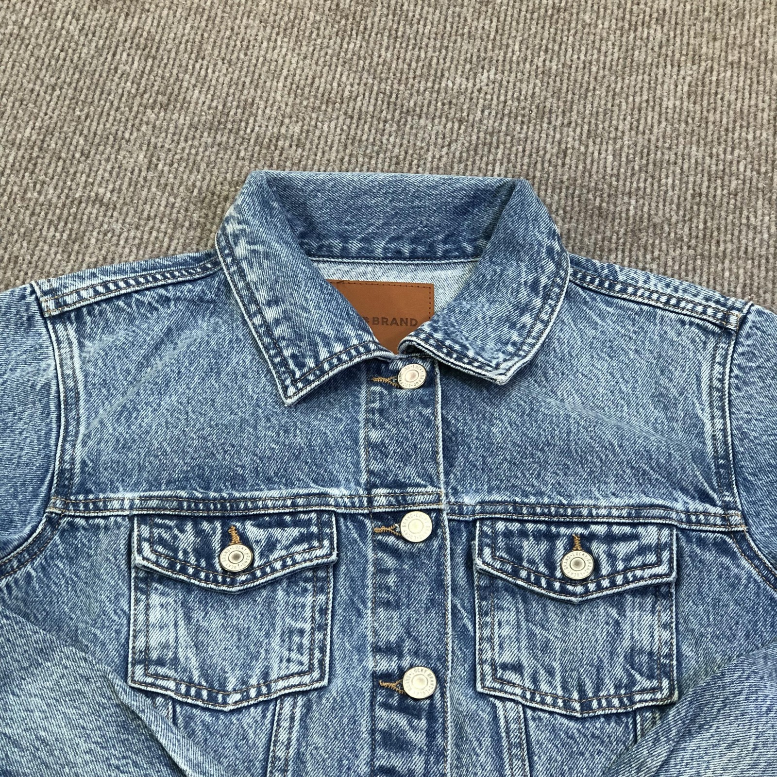 как выглядит Lucky Brand Jacket Kids Medium Blue Denim Trucker Button Front Pockets Fall фото