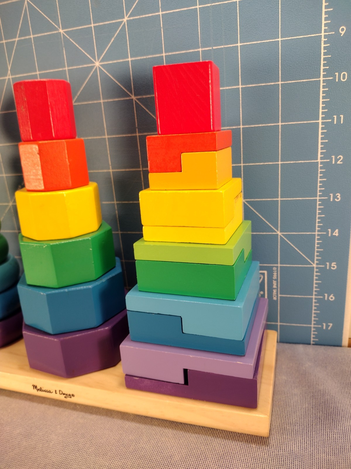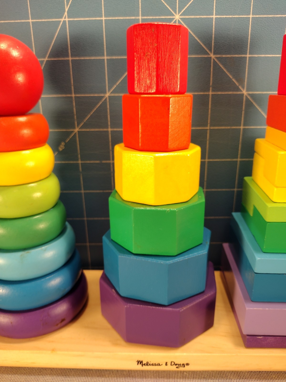 как выглядит Melissa Doug Geometric Stacker Wooden Toy 21 Pieces Rainbow Colors Cognitive фото