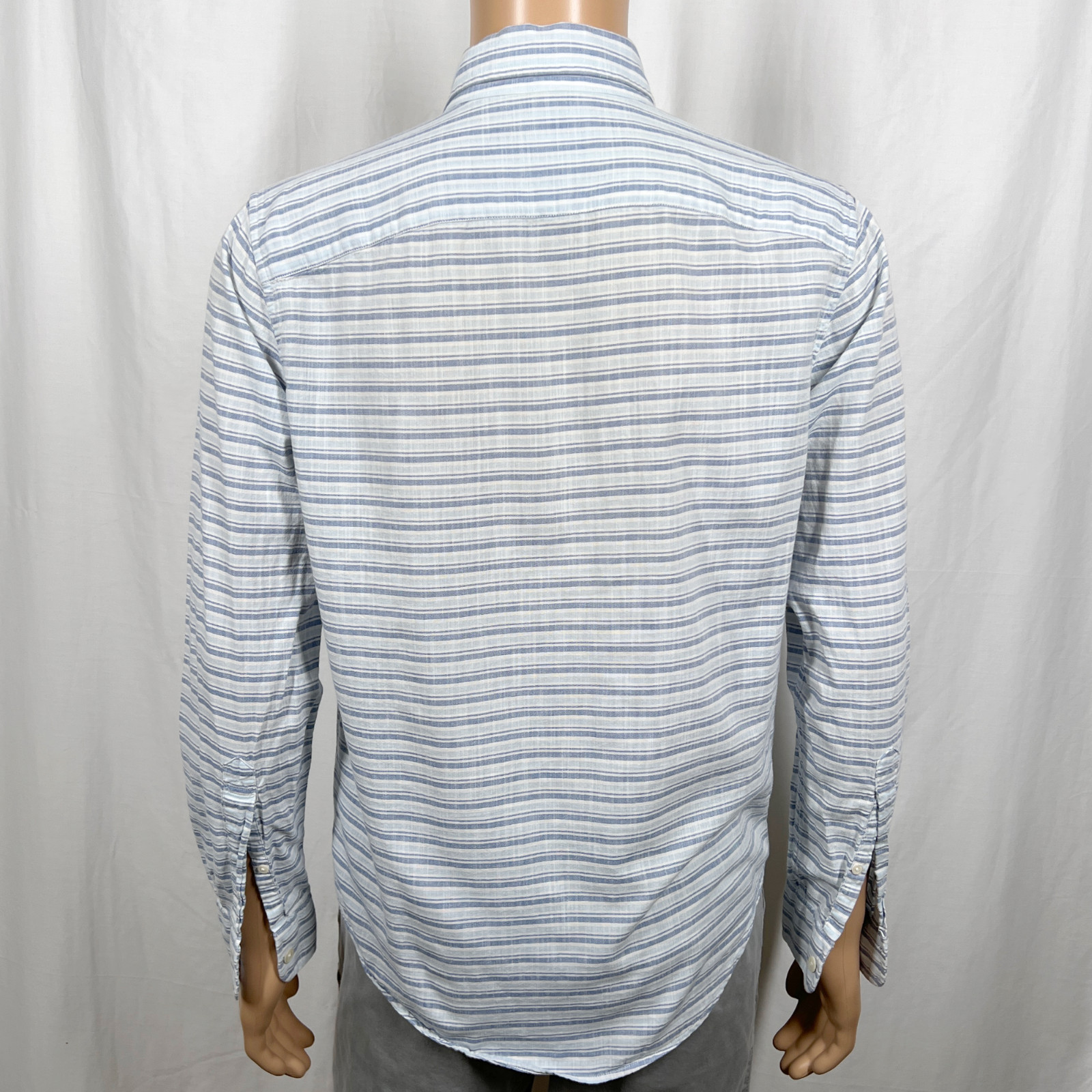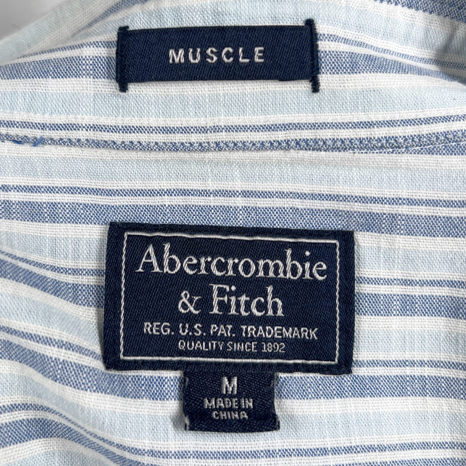 Abercrombie Fitch Men's Medium Blue Striped Muscle Long Sleeve Button-Up Shirt