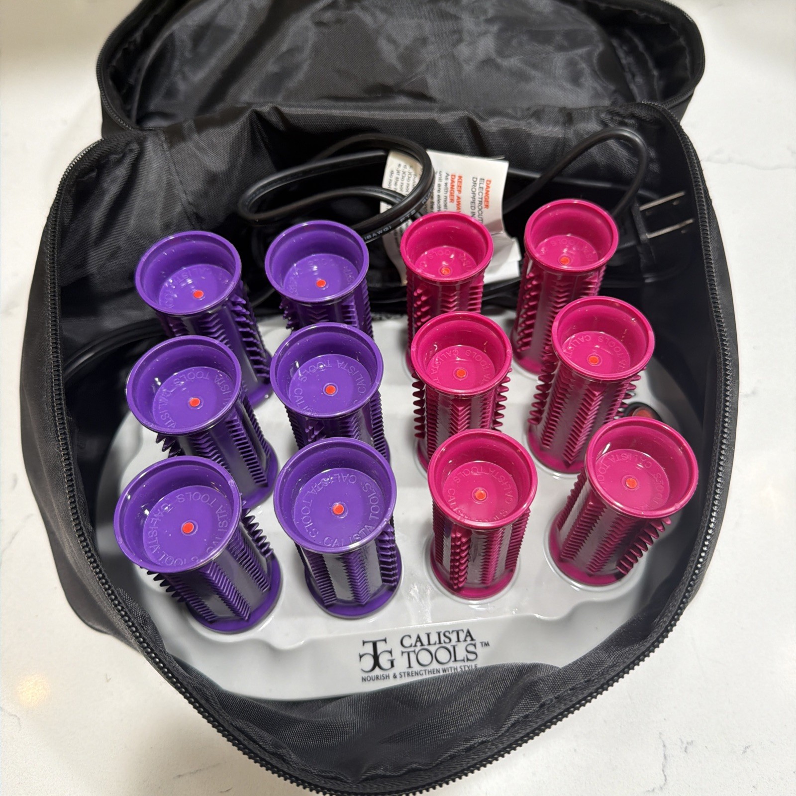 Calista Tools Ion Hot Rollers Short Length Style Set 12 Roller Case EUC