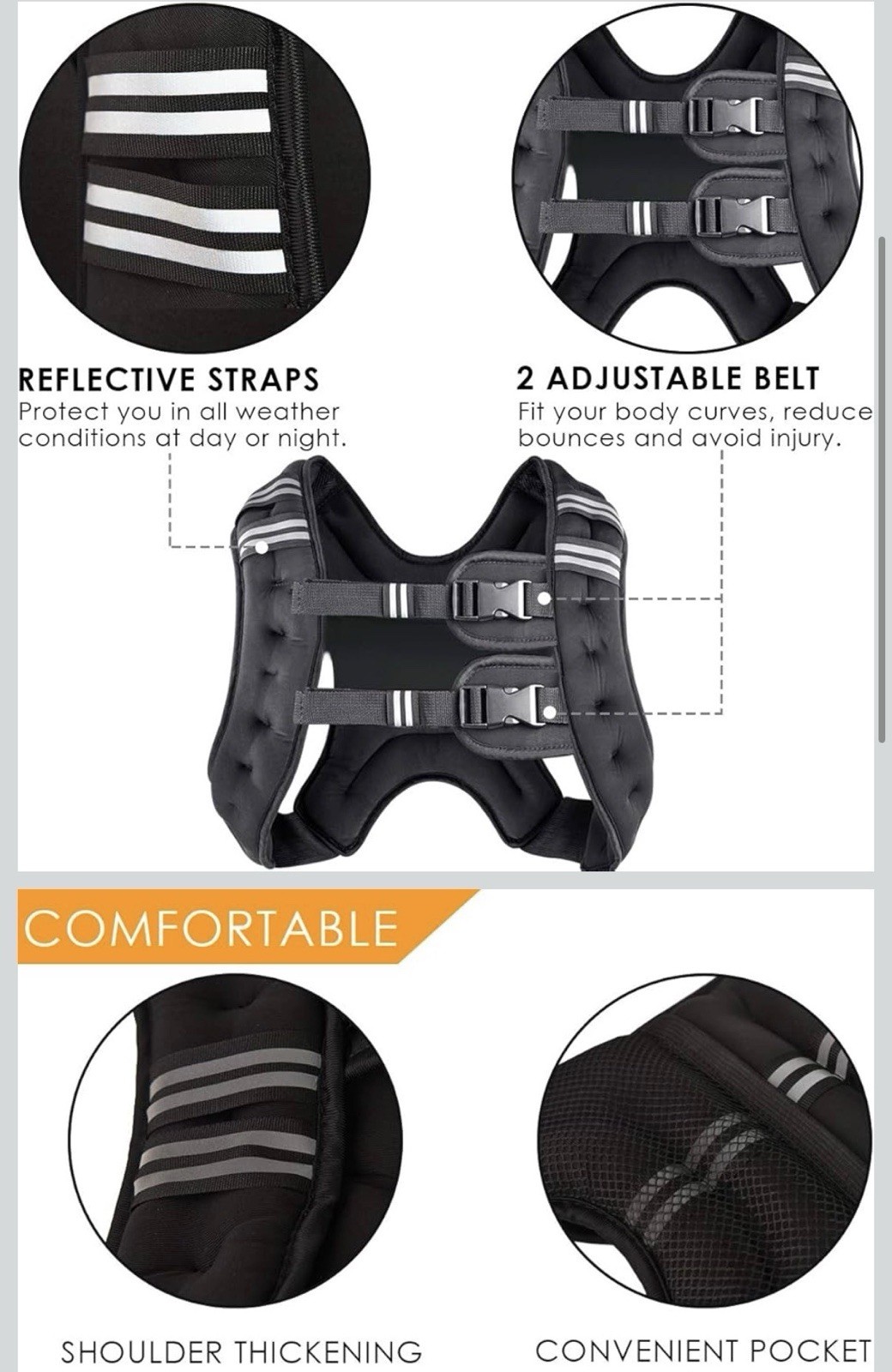 как выглядит Black 20lb Weighted Vest Reflective Straps Pocket Thickened Shoulder Gym фото