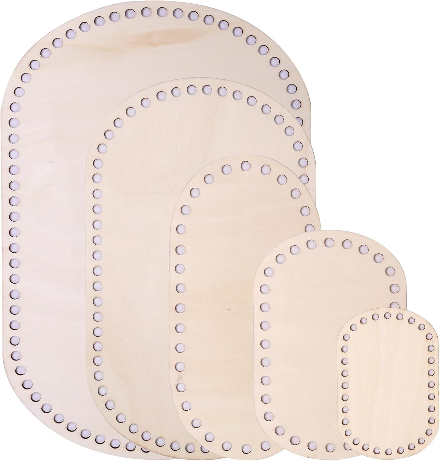 5Pcs Wooden Basket Bottom, 5 Sizes Oval Circle Blank Crochet Basket Wood Base
