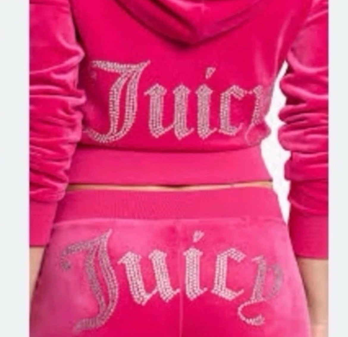 как выглядит NWT Juicy Couture Velour Tracksuit Set Vixen Pink OG Bling Rhinestone Back Y2K фото