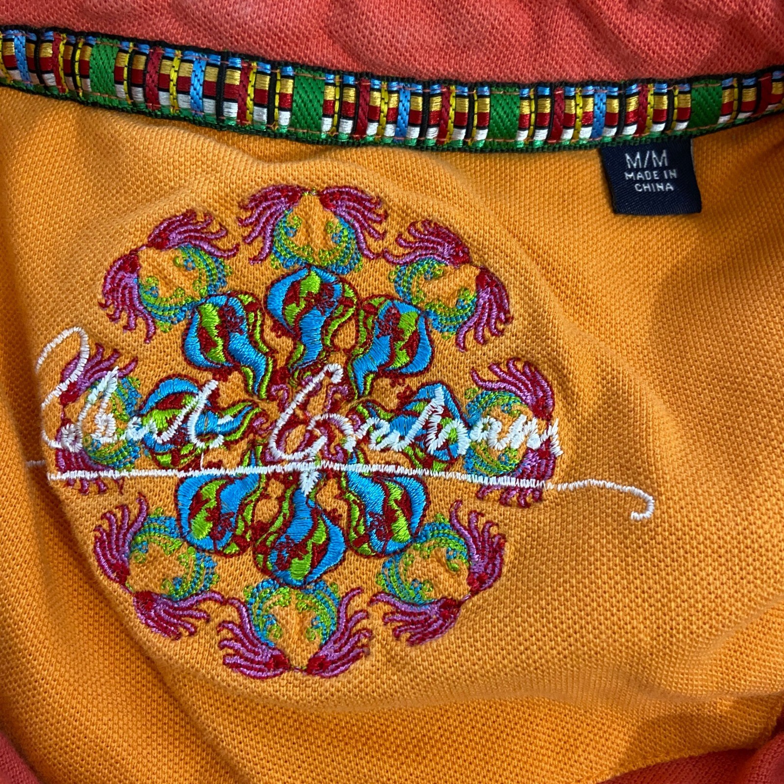 Robert Graham Coral Orange Short Sleeve Polo Shirt Mens Medium