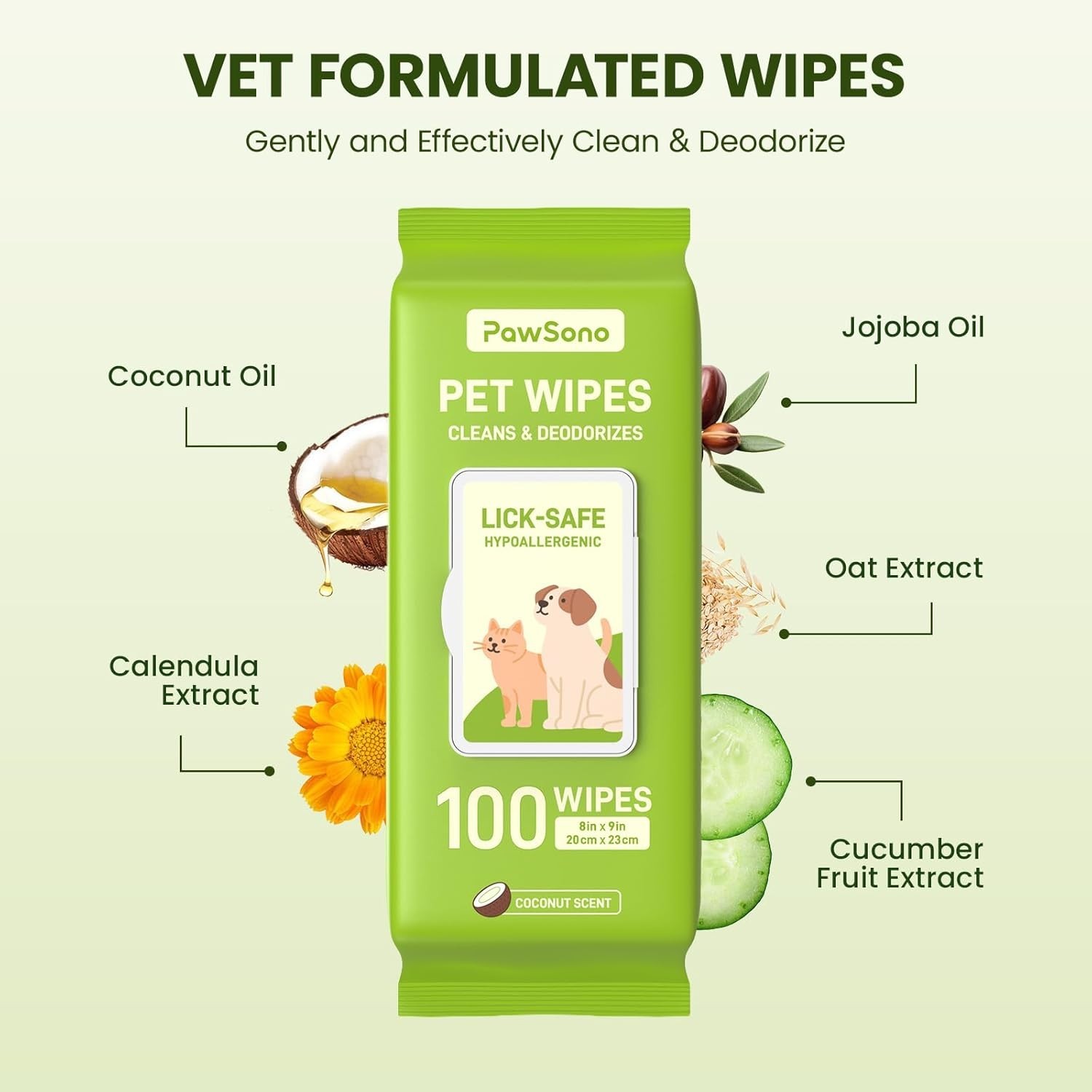 Pet Wipes Dogs Cats 400 Count Hypoallergenic Coconut Scent Grooming XL Thick