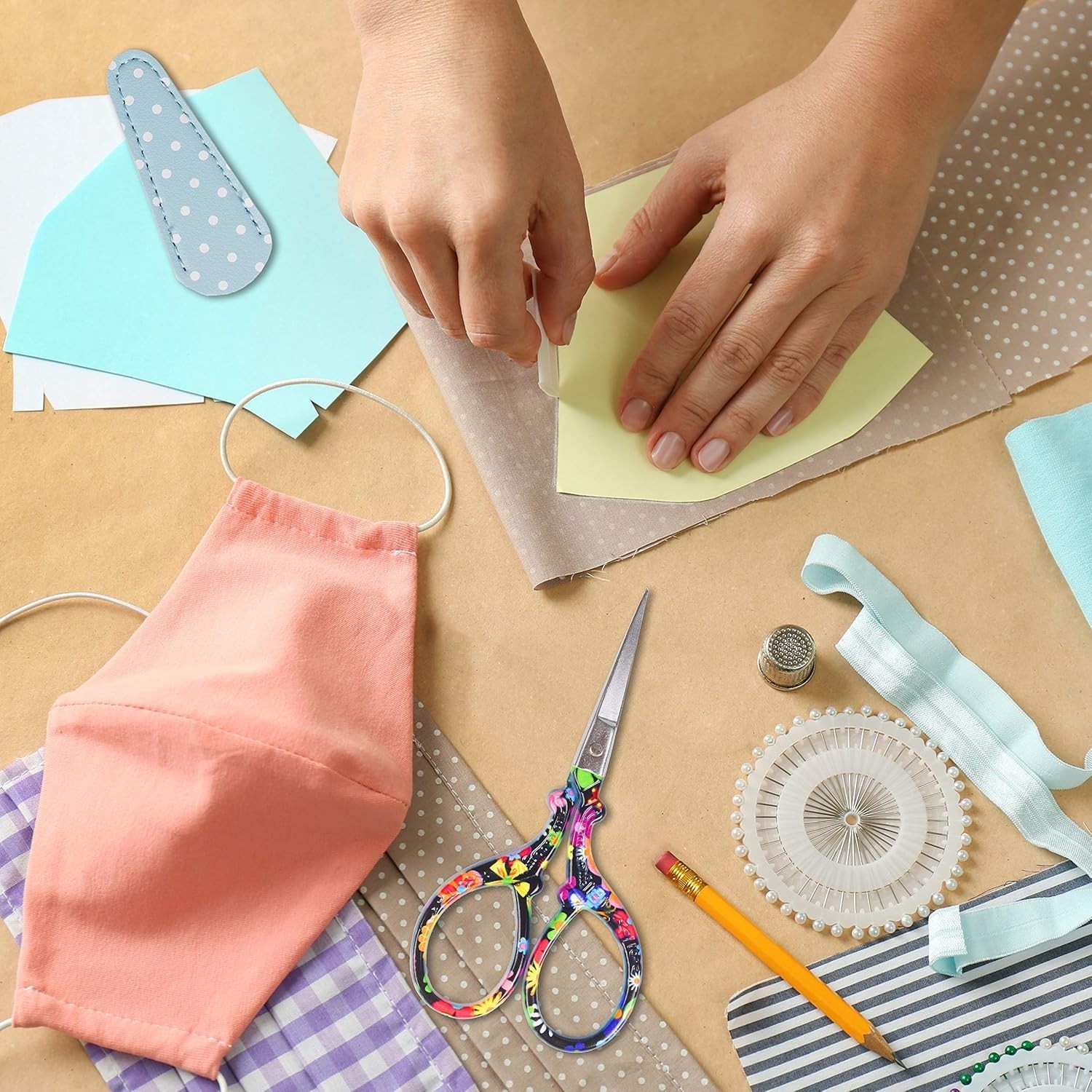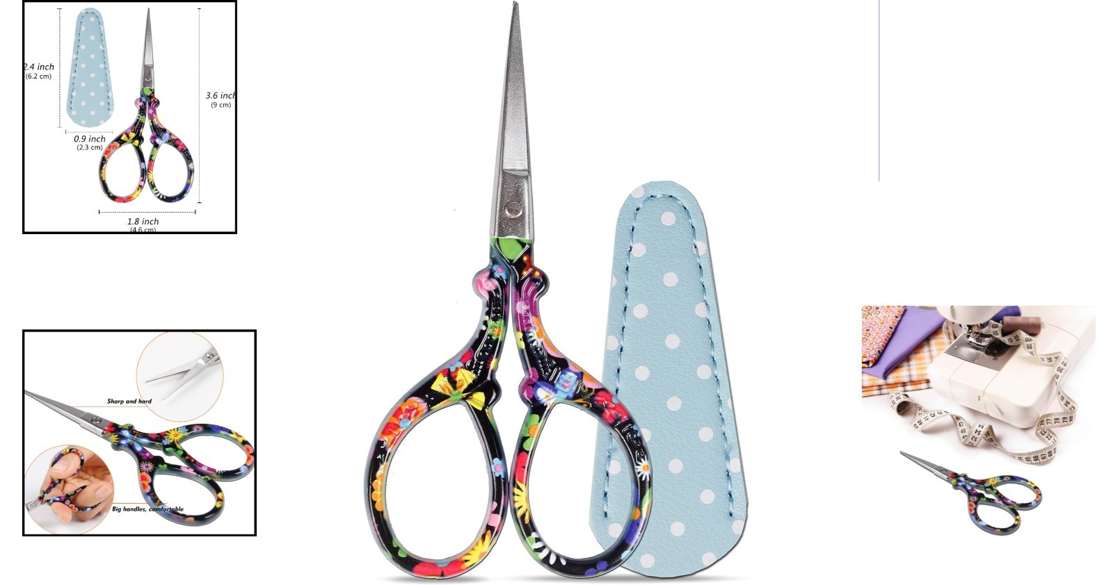 Compact Handmade Stainless Steel Sewing Scissors with Polka-Dot Leather Sleeve