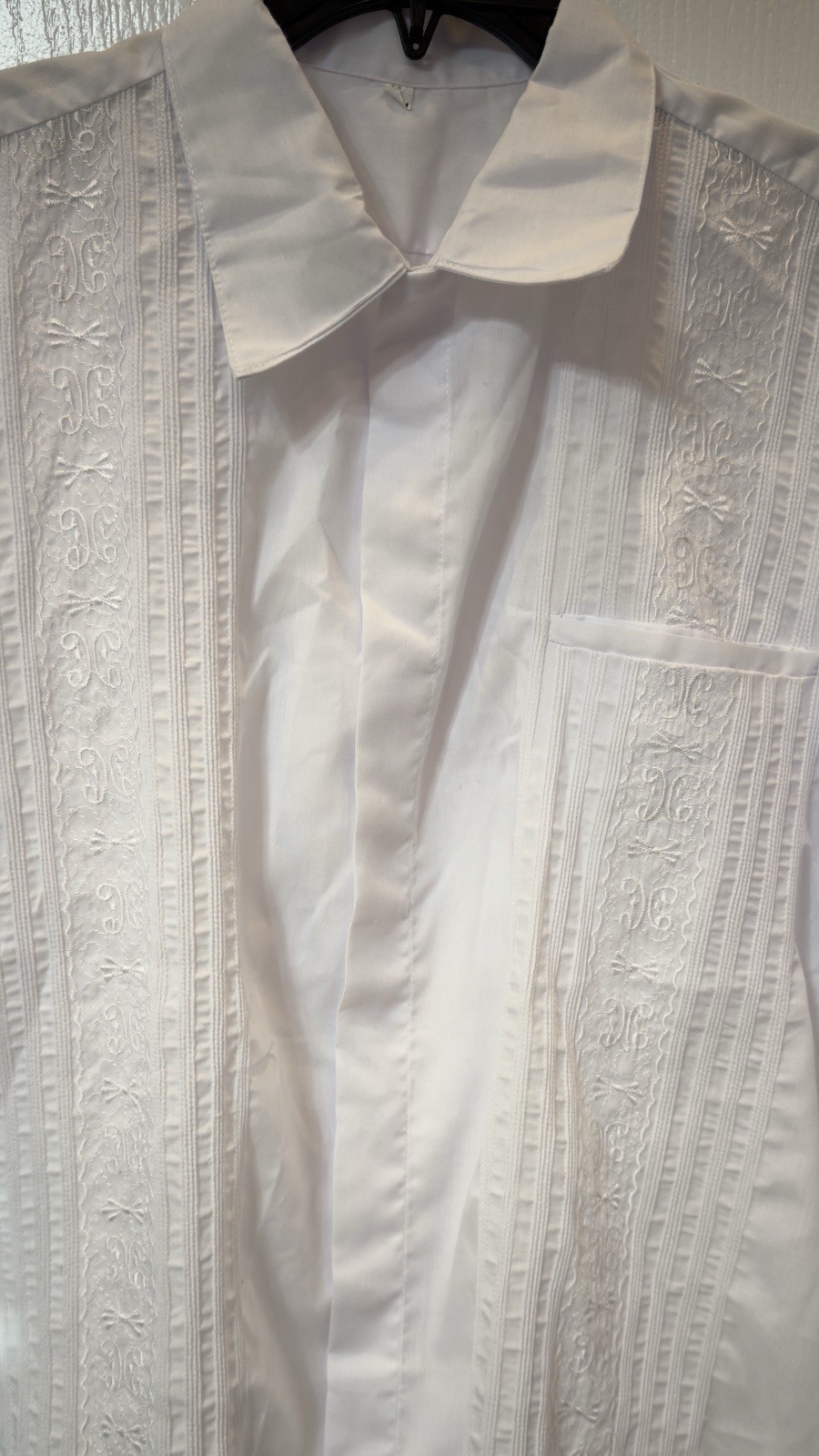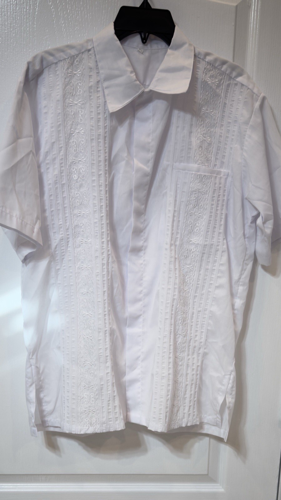 Handmade Men s Guayabera Short Sleeve Large But Run Medium Button Down White