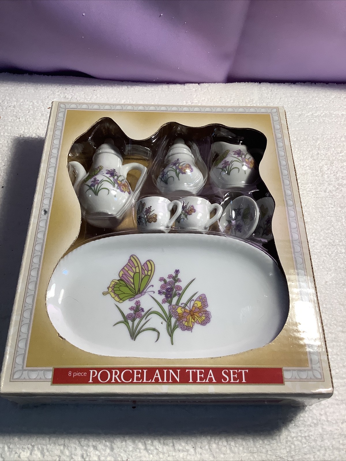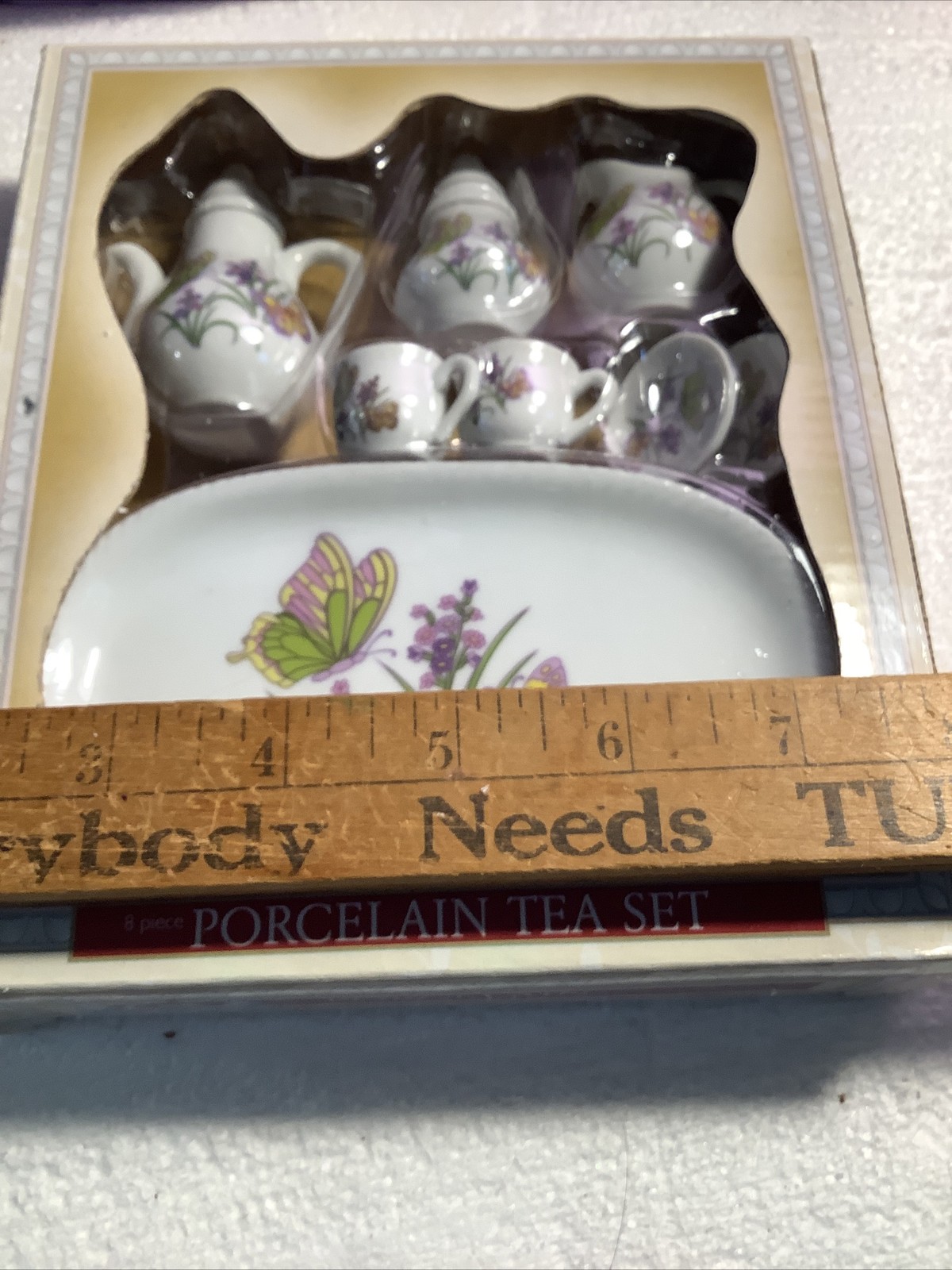 Vintage Tea 8 Piece Set Miniature Porcelain Butterflies Flowers
