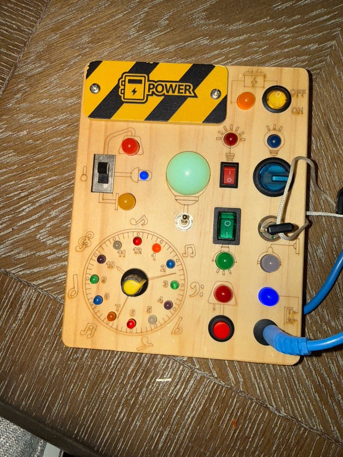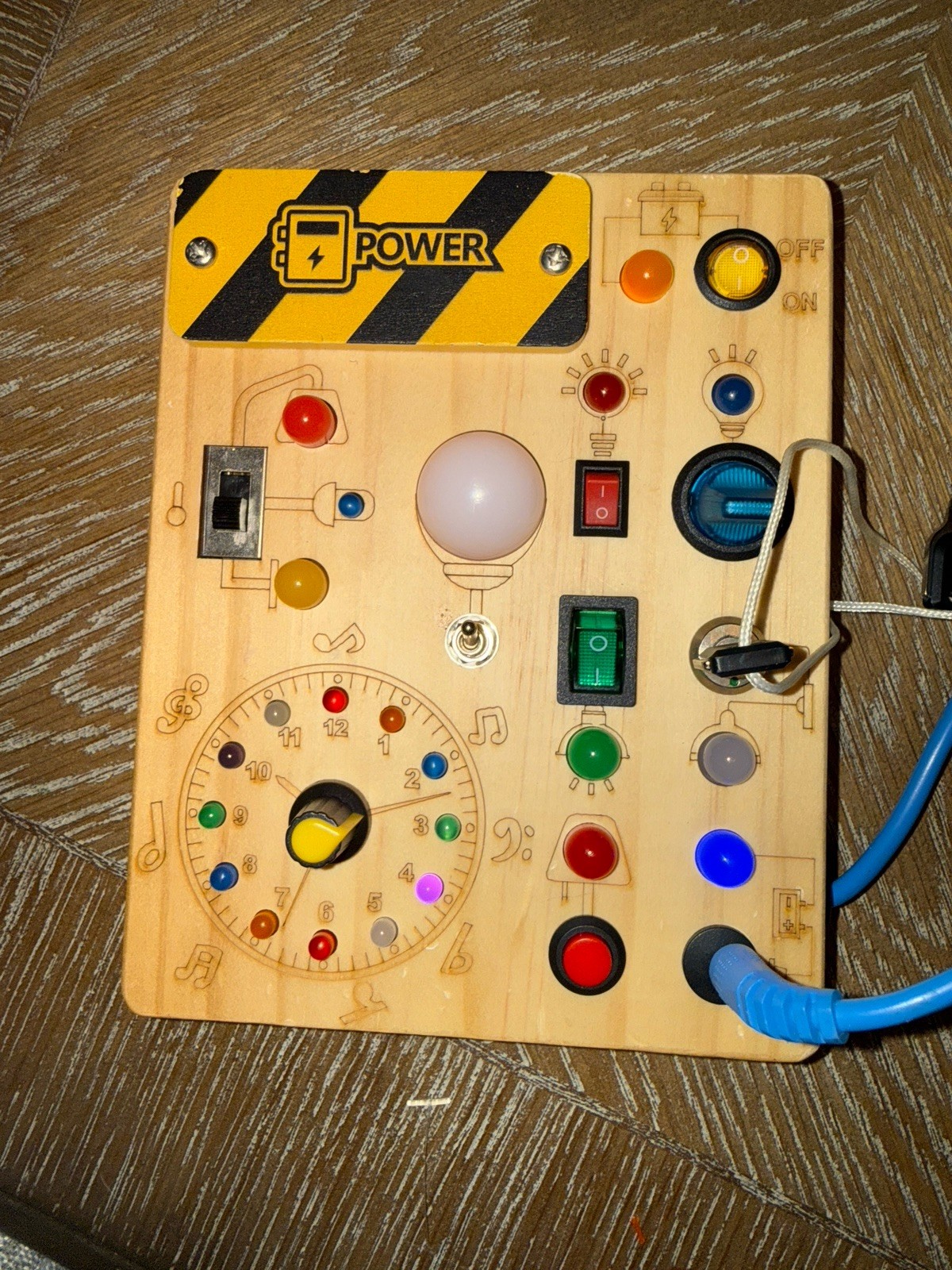 Interactive Wooden Activity Board w/ Buttons and Switches busy board Montessori
