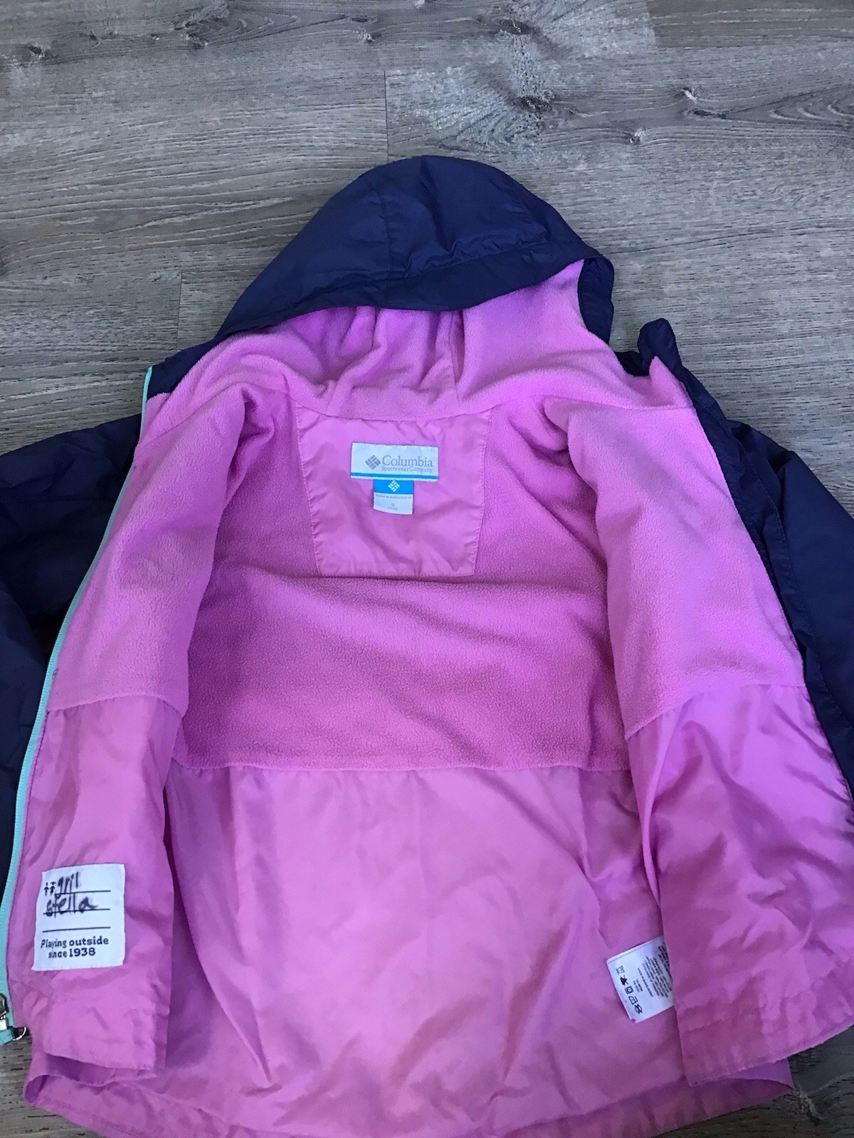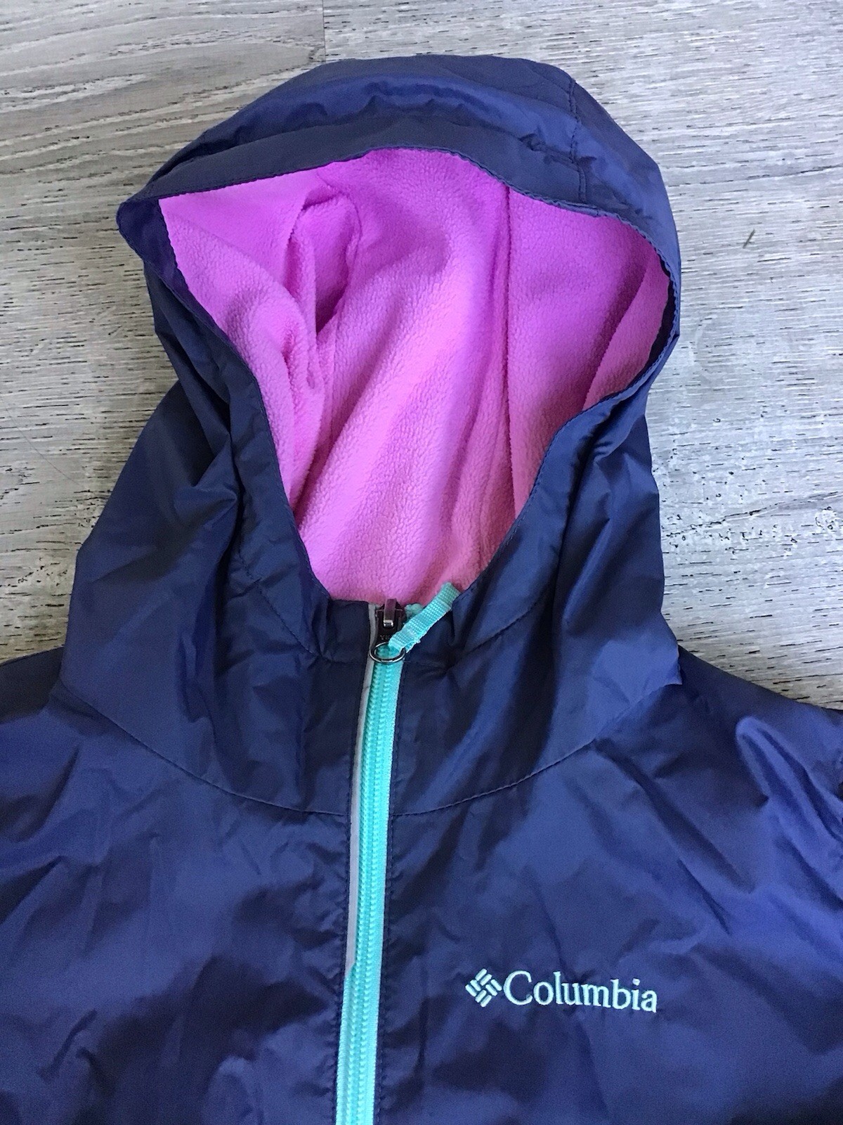 как выглядит Columbia Windbreaker Size Small 7/8 Youth Nylon Jacket Hooded Color Block Pink фото